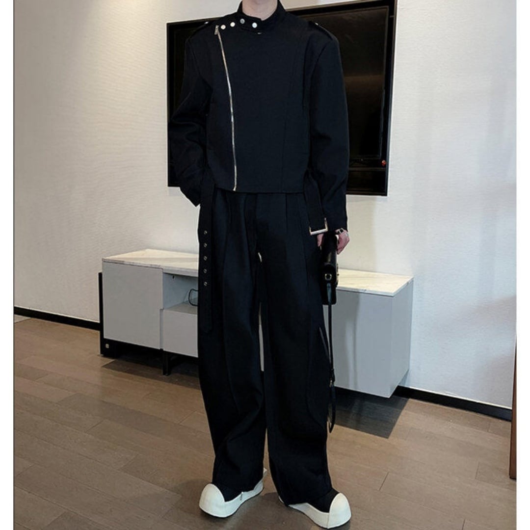 ライダース風ジャケット&センタープレスパンツ セットアップ 2カラー D11554