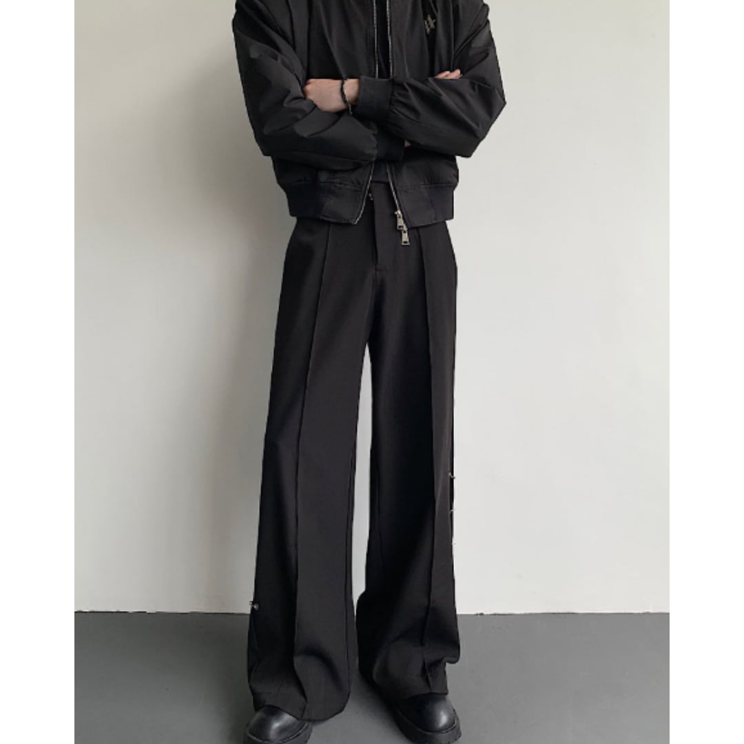 ダブルアイアンリングメタルデザインストレートパンツ D11863