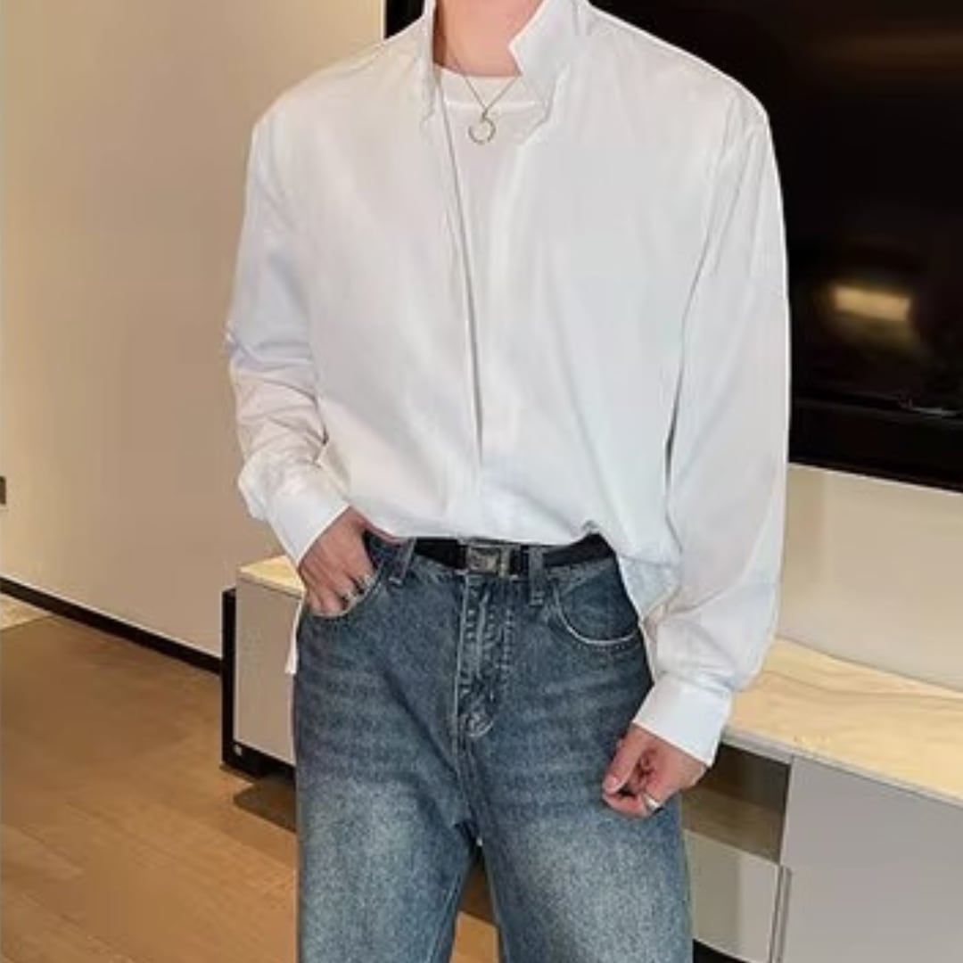 フェイクツーピースダブルレイヤーデザインシャツ 3カラー D11864