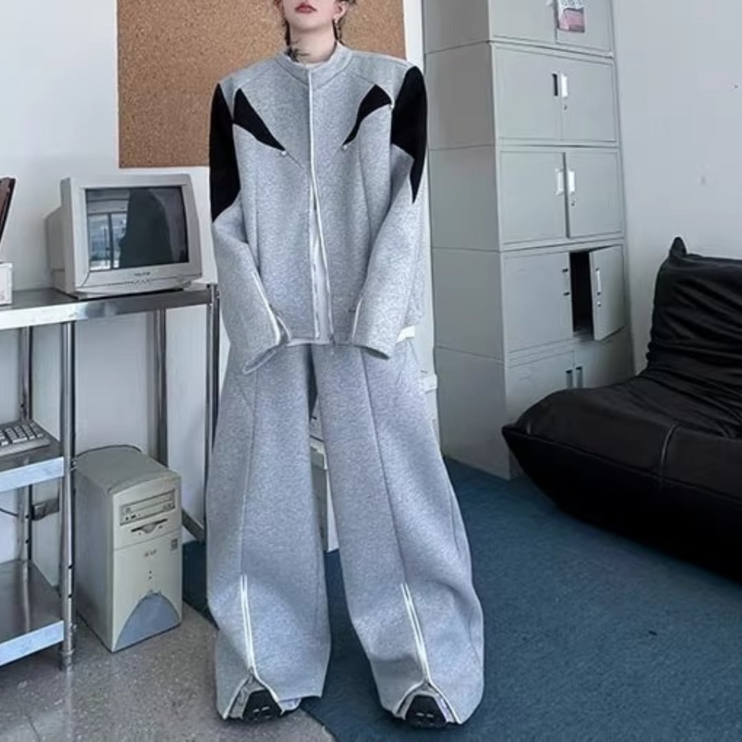 スタンドカラースポーツジャケット&ジッパーワイドレッグパンツツーピース 2カラー D11872