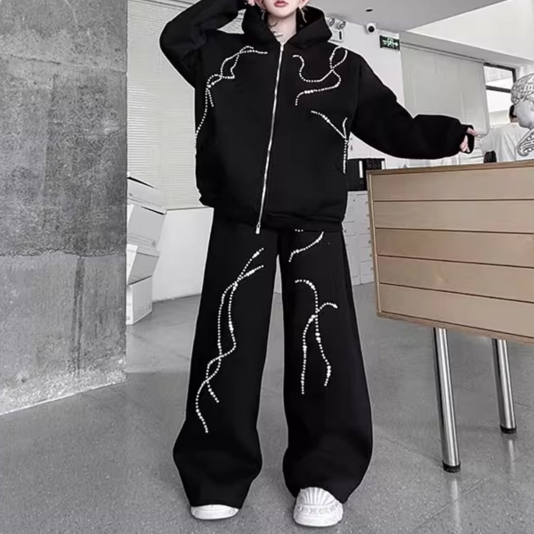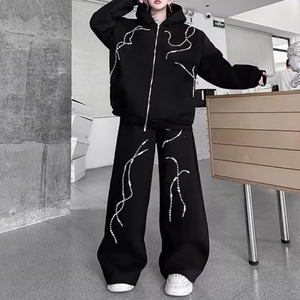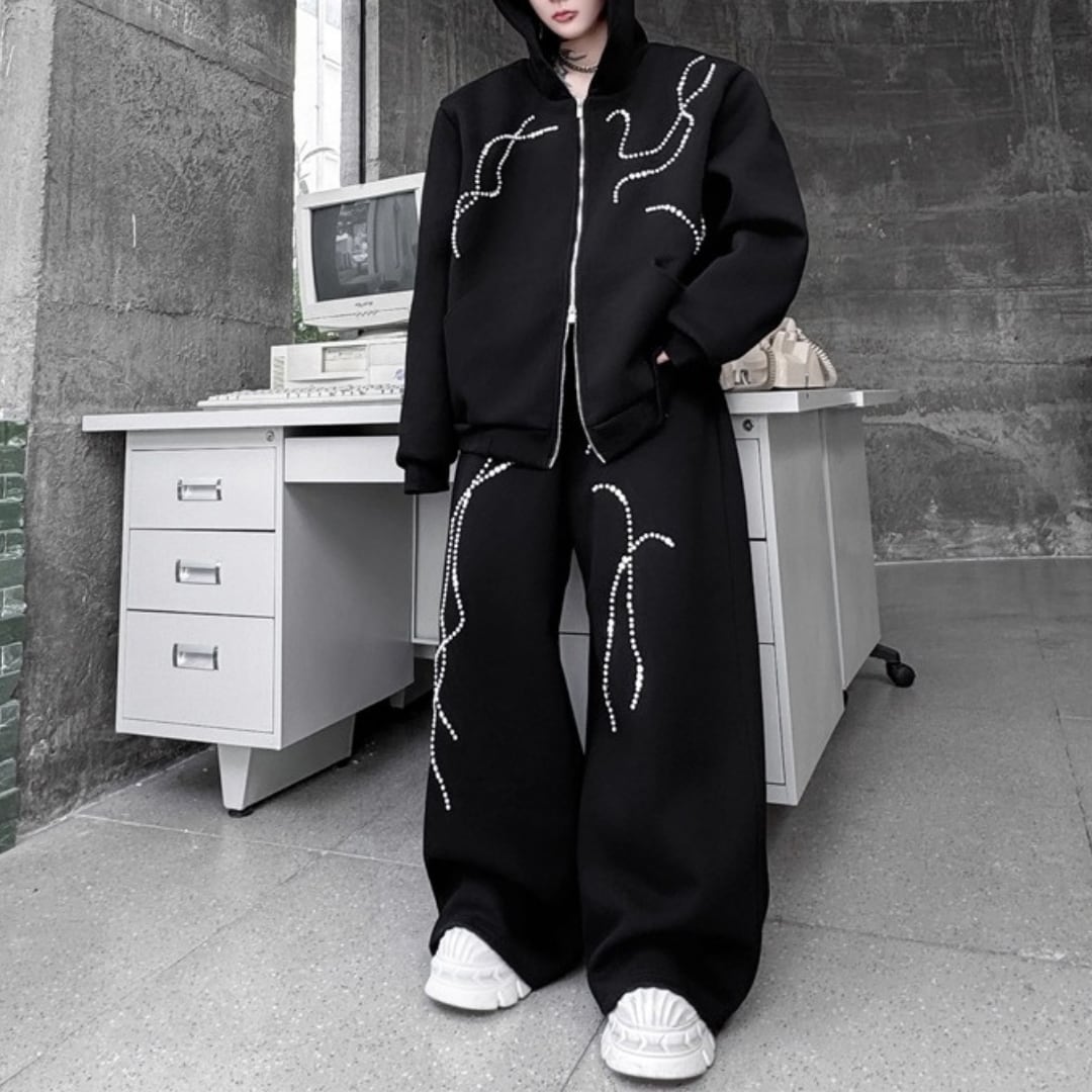 ビーズデザインパーカー&ワイドパンツツーピース 2カラー D11874