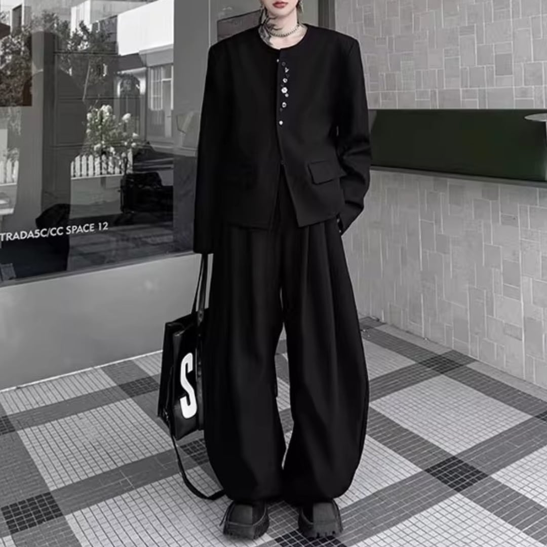 マルチボタン装飾ジャケット&ワイドパンツツーピース 2カラー D11875