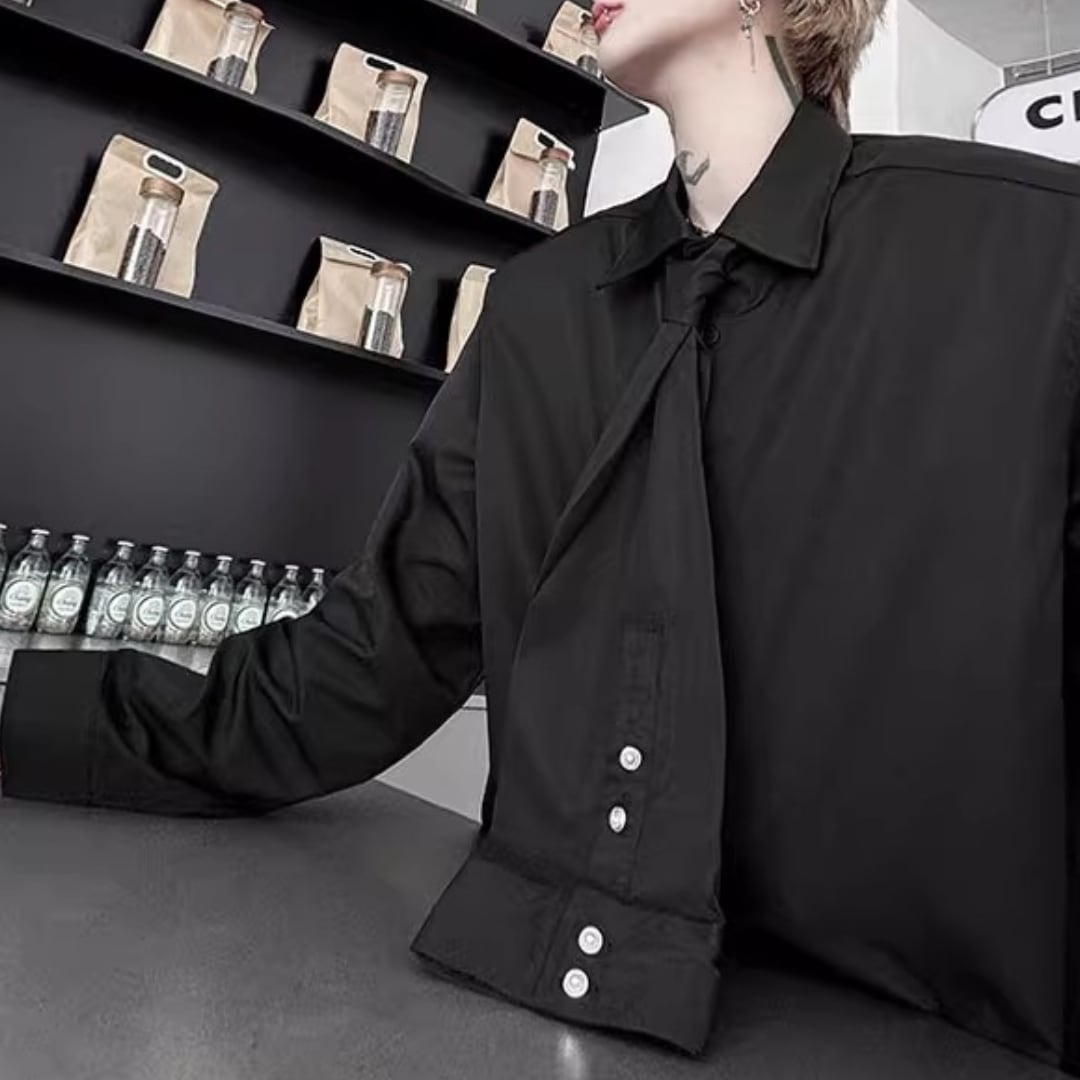 ネクタイ装飾デザイン長袖シャツ 2カラー D11882