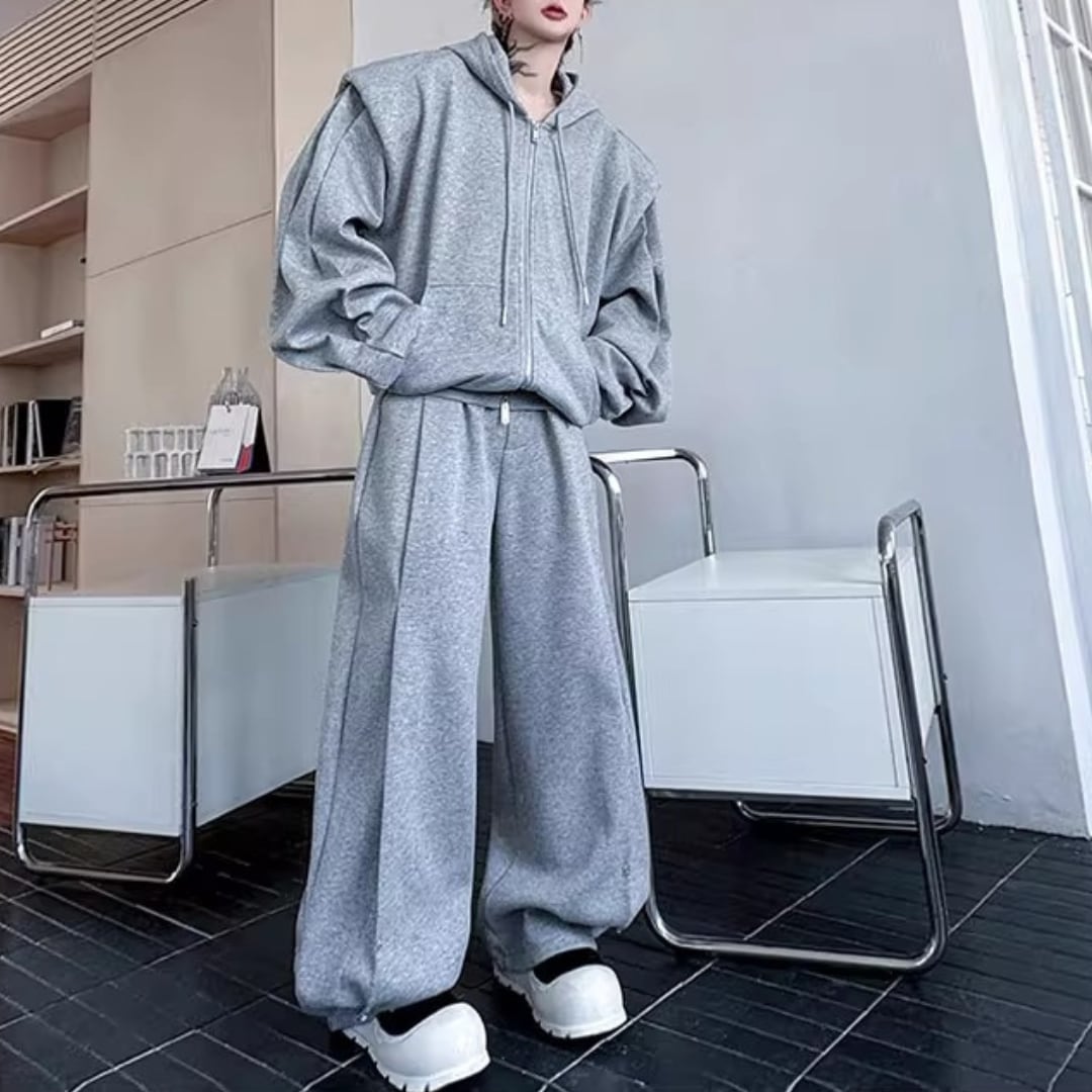 ルーズスウェットパーカー&カジュアルワイドパンツツーピース 2カラー D11884