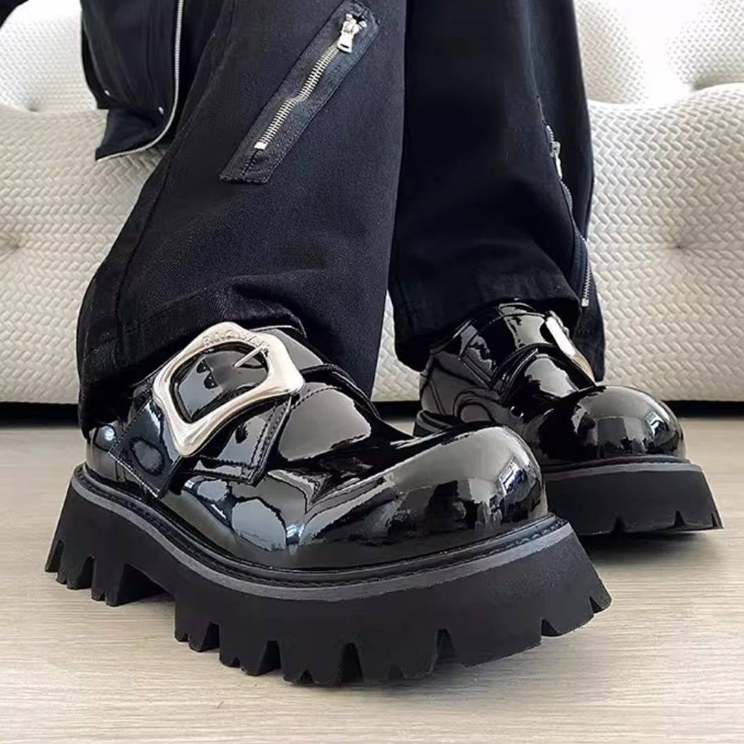 ベルクロバックル付き厚底カジュアルレザーシューズ D11889
