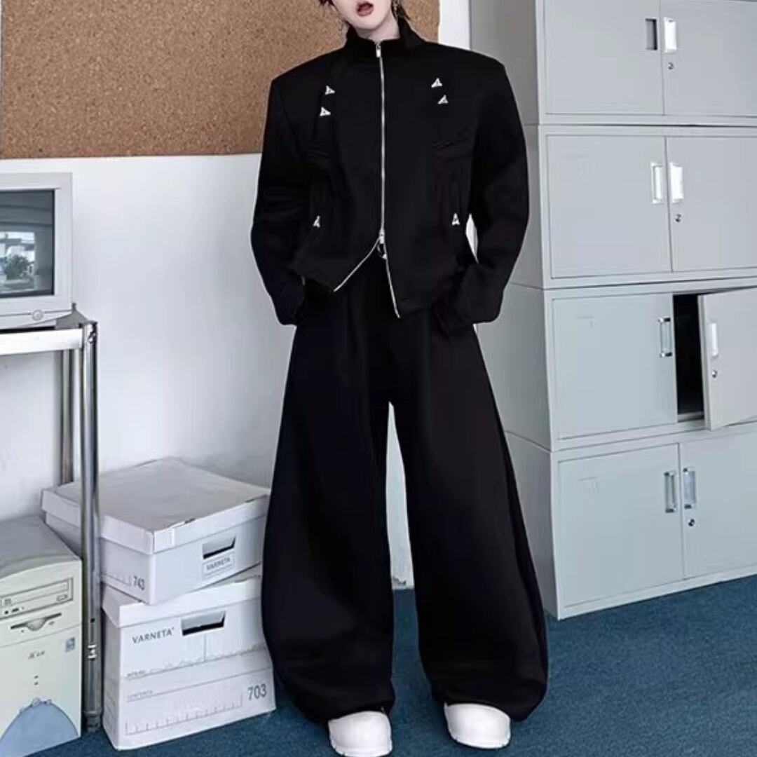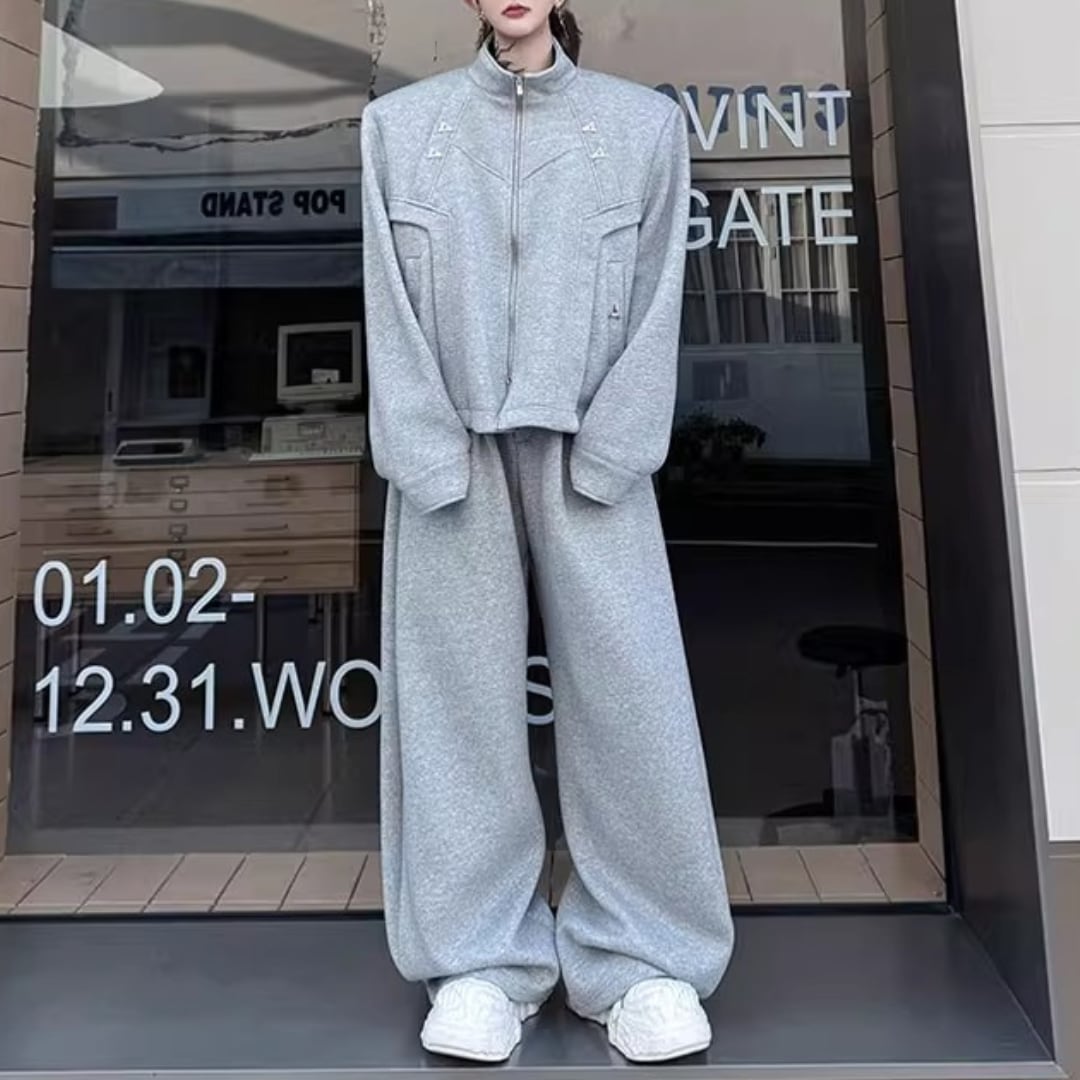 スタンドカラーシルエットスウェットシャツ&ワイドパンツセットアップ 2カラー D11893
