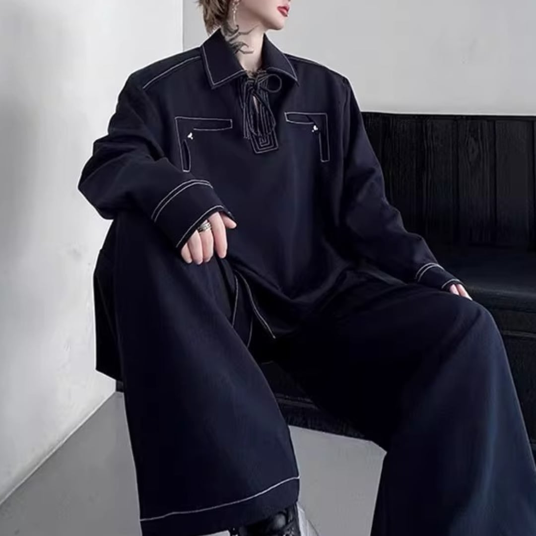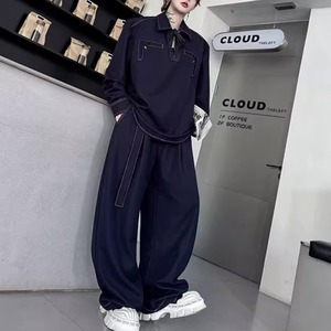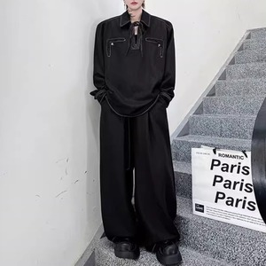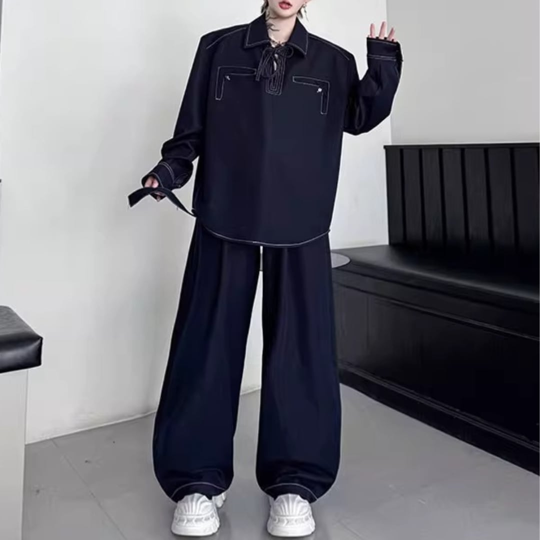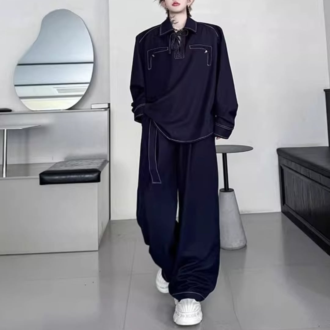 レトロプルオーバーデニムシャツ&ワイドレッグパンツセットアップ 2カラー D11897