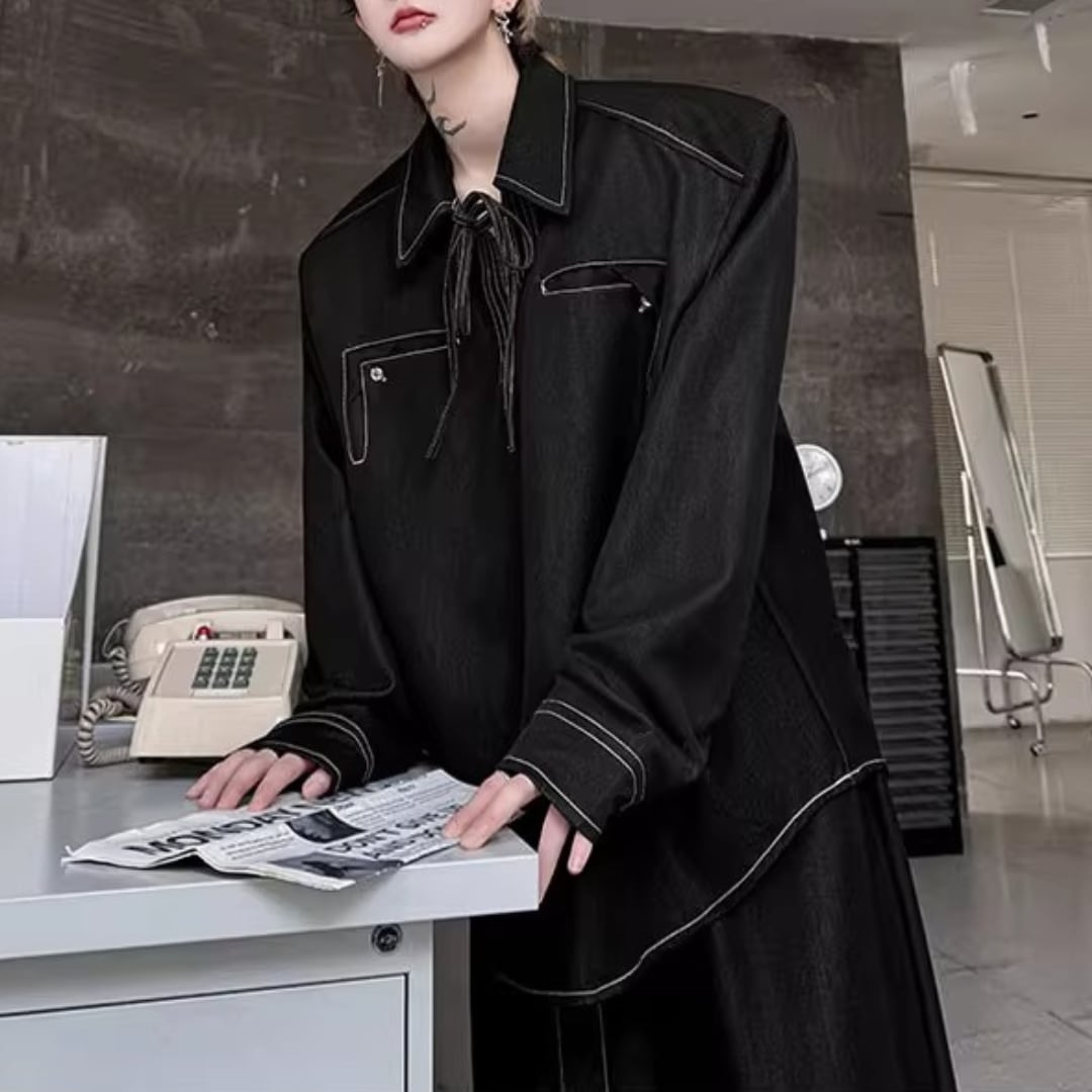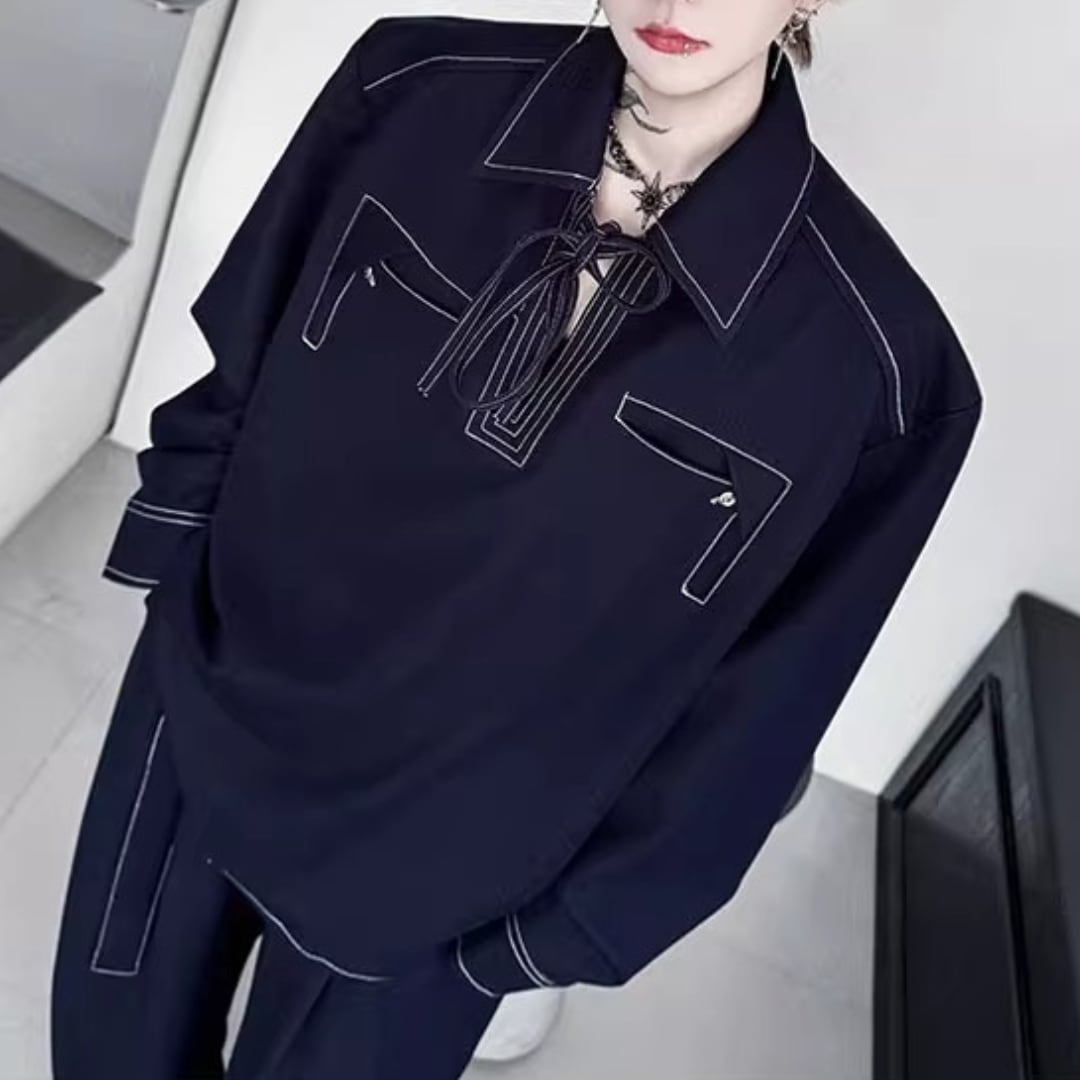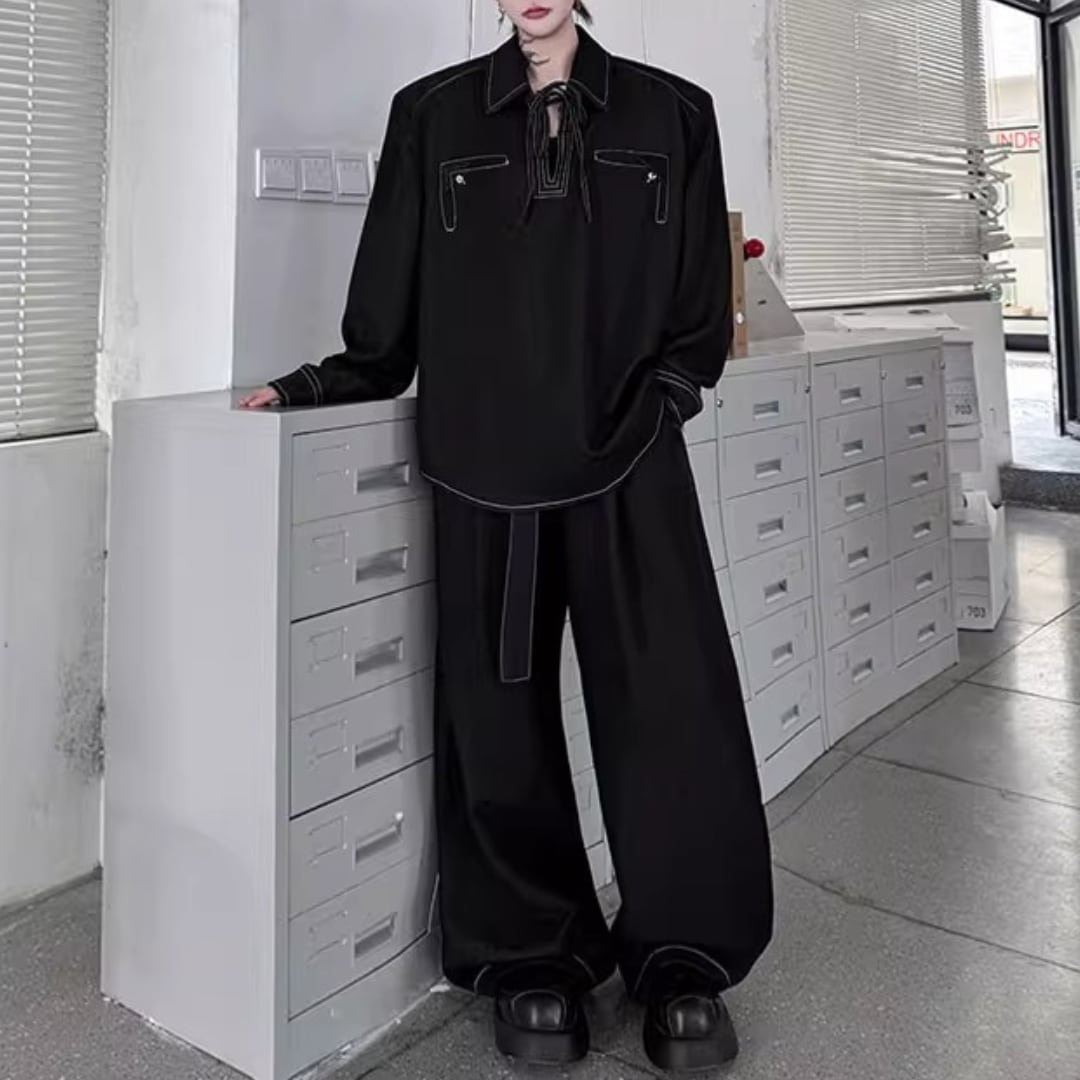 レトロプルオーバーデニムシャツ&ワイドレッグパンツセットアップ 2カラー D11897