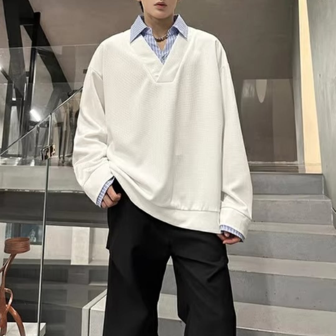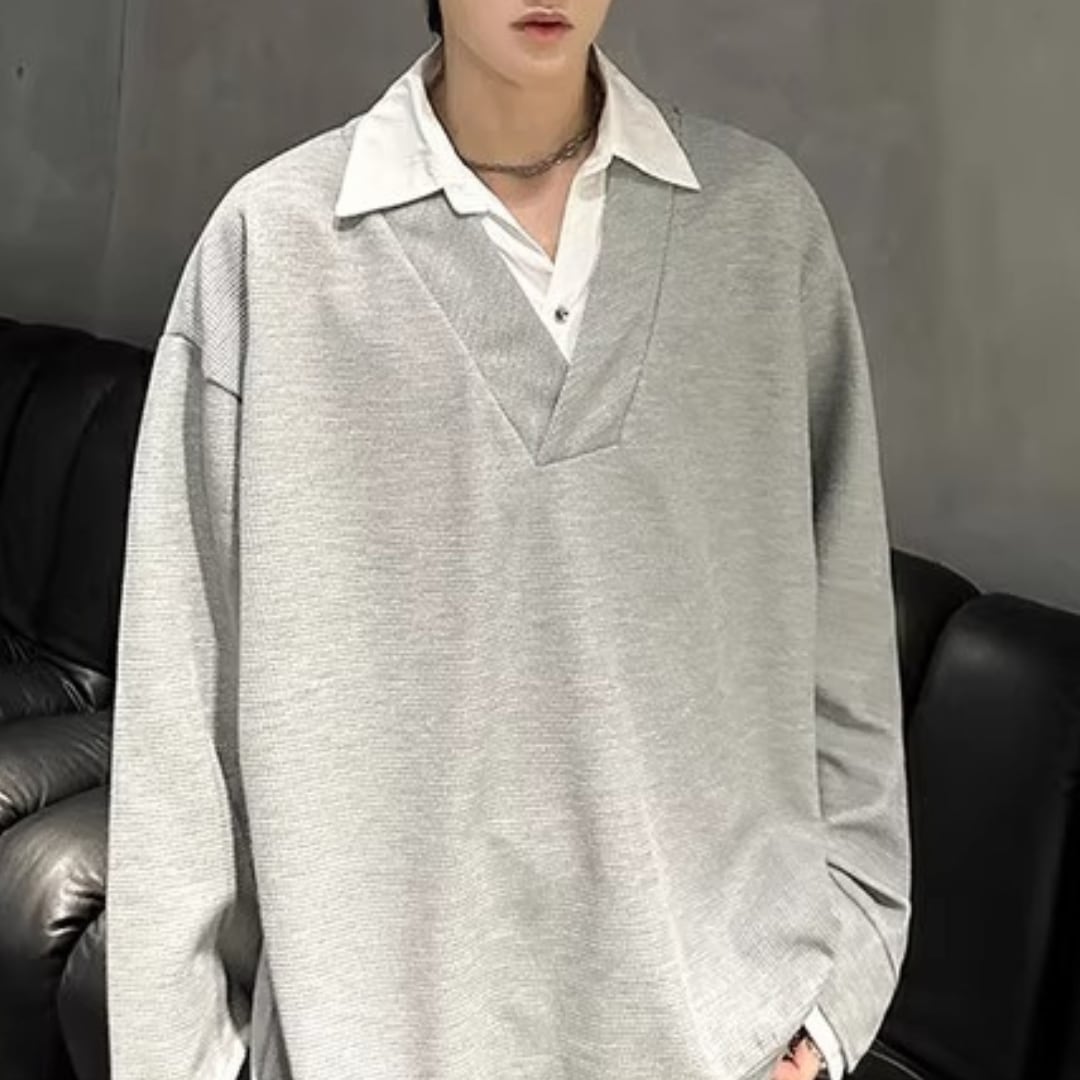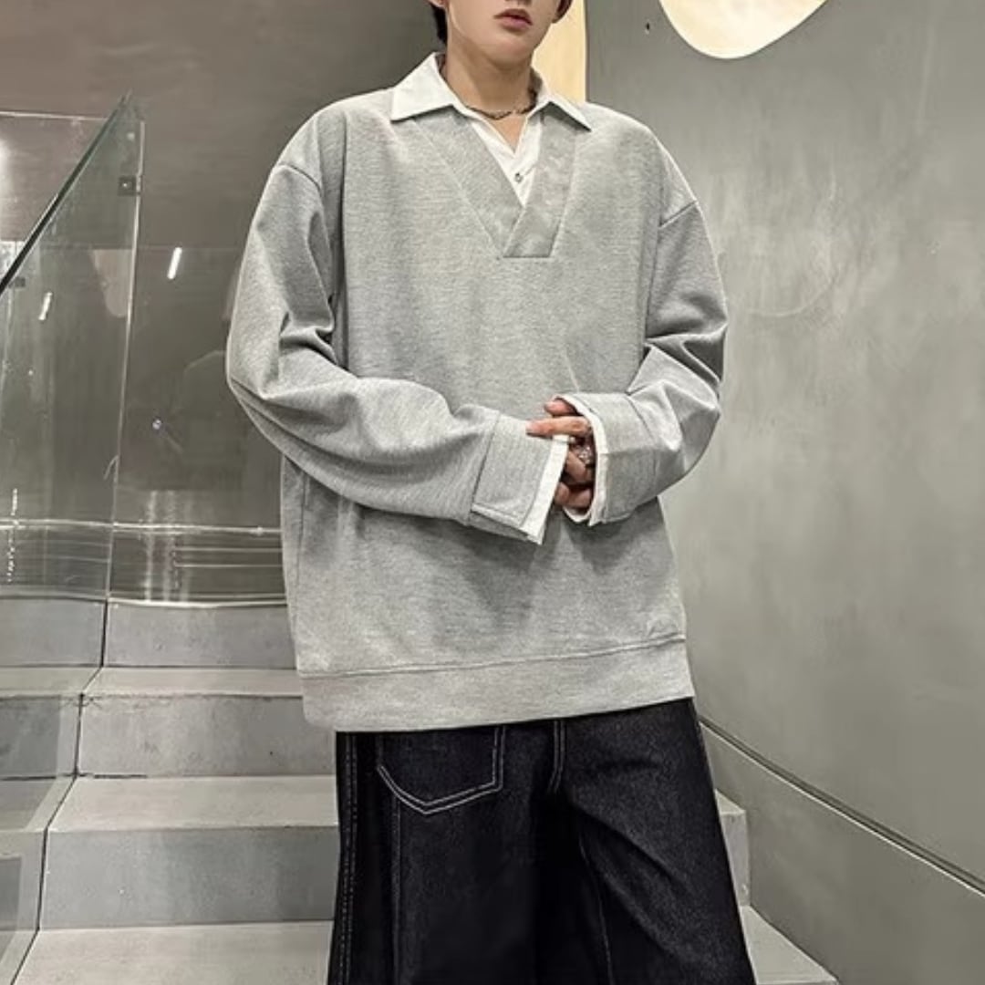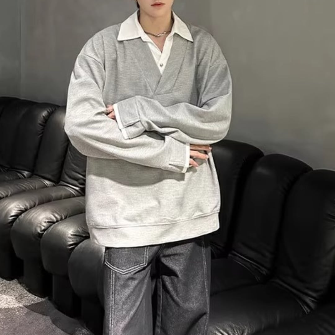 カジュアルスエットシャツ Vネックフェイクツーピース 3カラー D11899