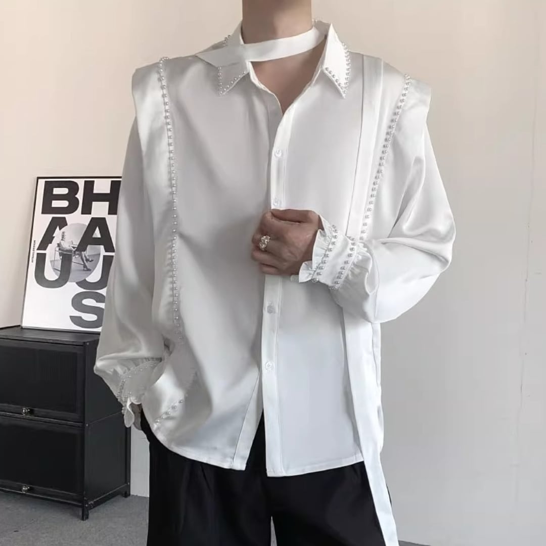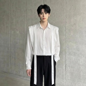 パールファッションリボンデザイン長袖シャツ D11903
