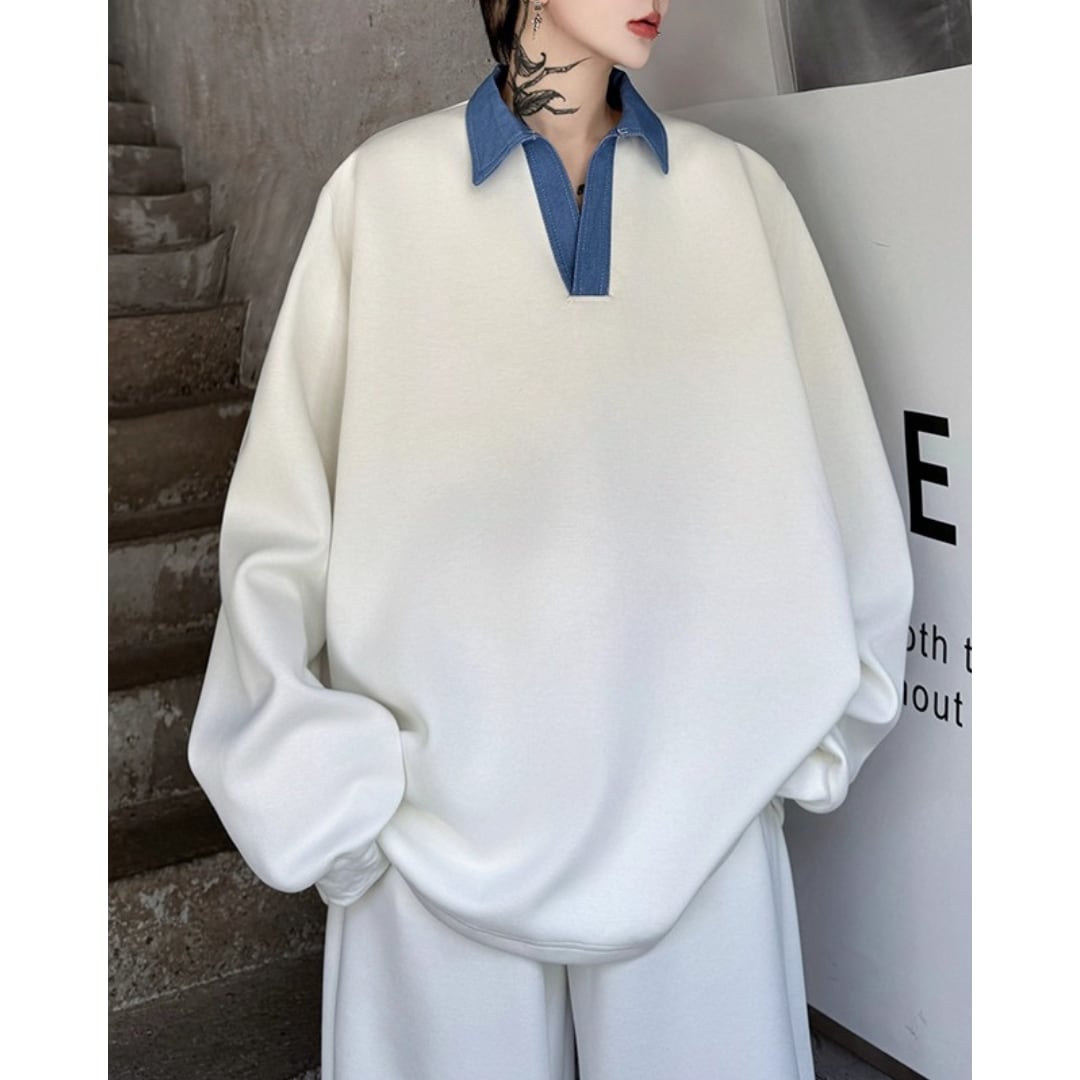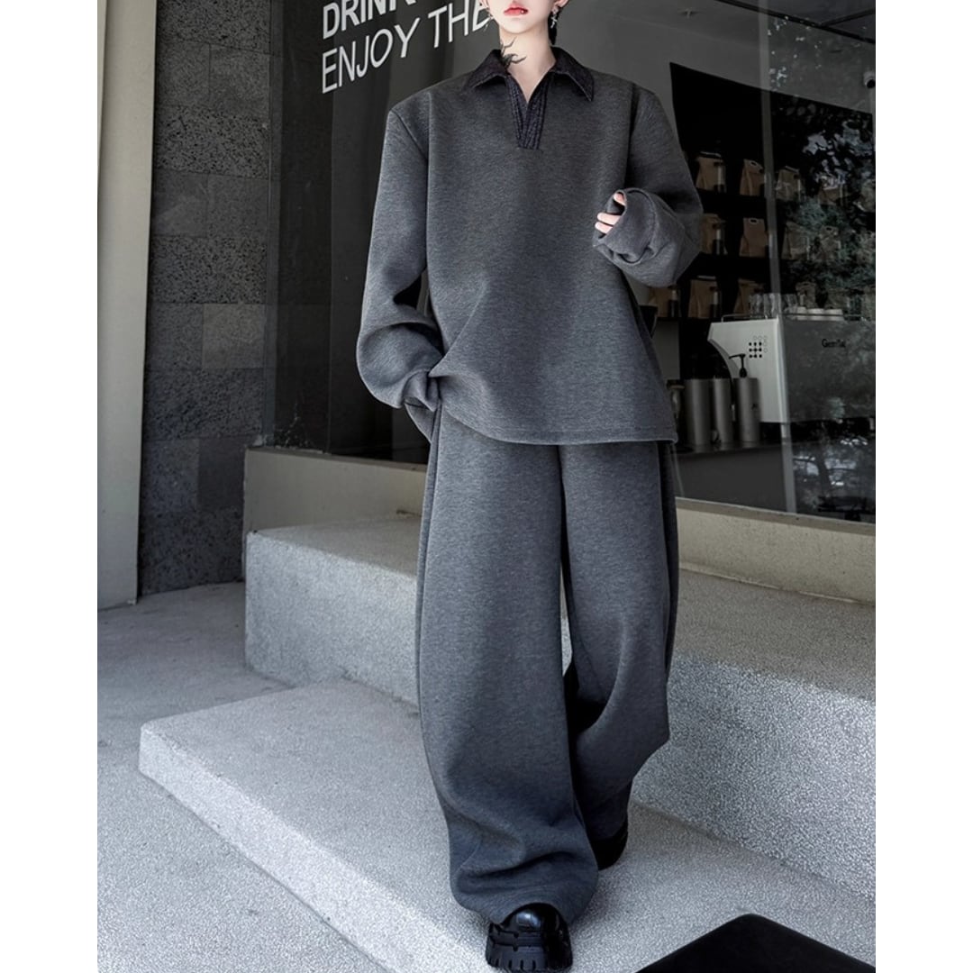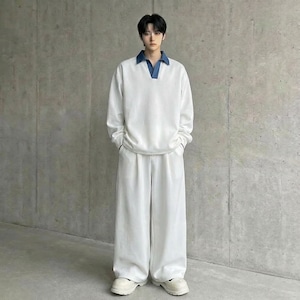 フェイクツーピーススプライシングスウェット&カジュアルワイドレッグパンツセットアップ 2カラー D11924