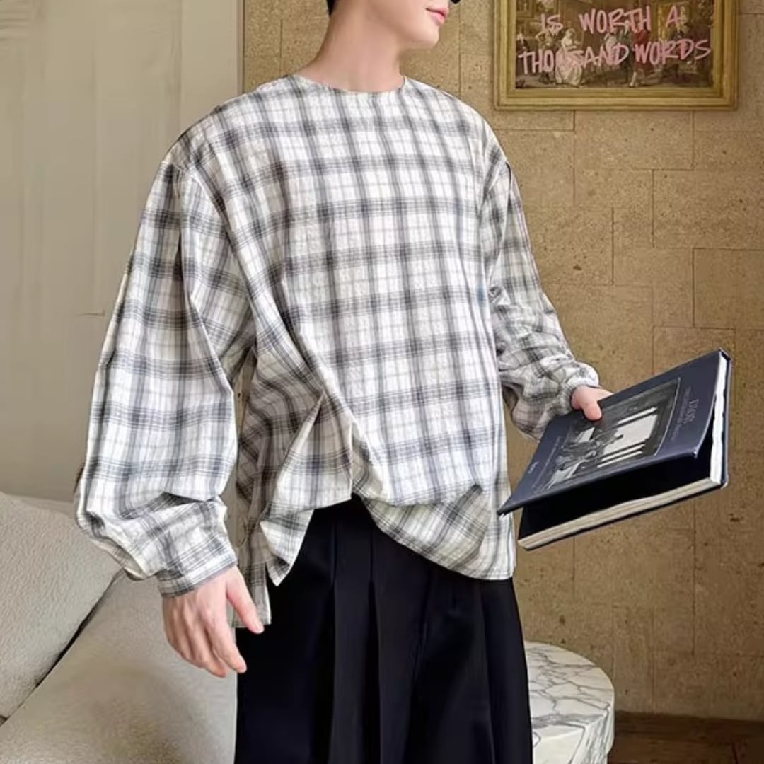 チェック柄プルオーバー長袖シャツ 2カラー D11926