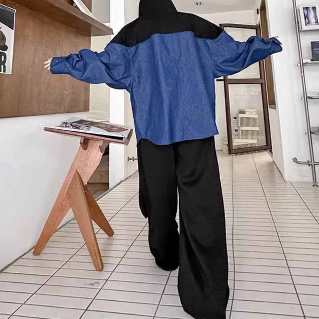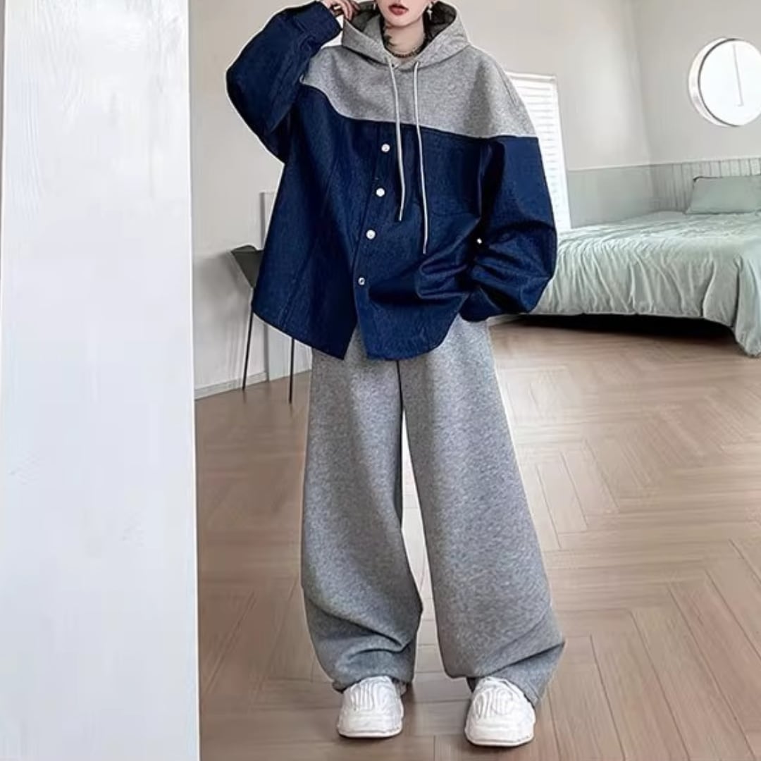 コントラストカラーフード付きスウェットシャツ&スウェットパンツセットアップ 2カラー D11931