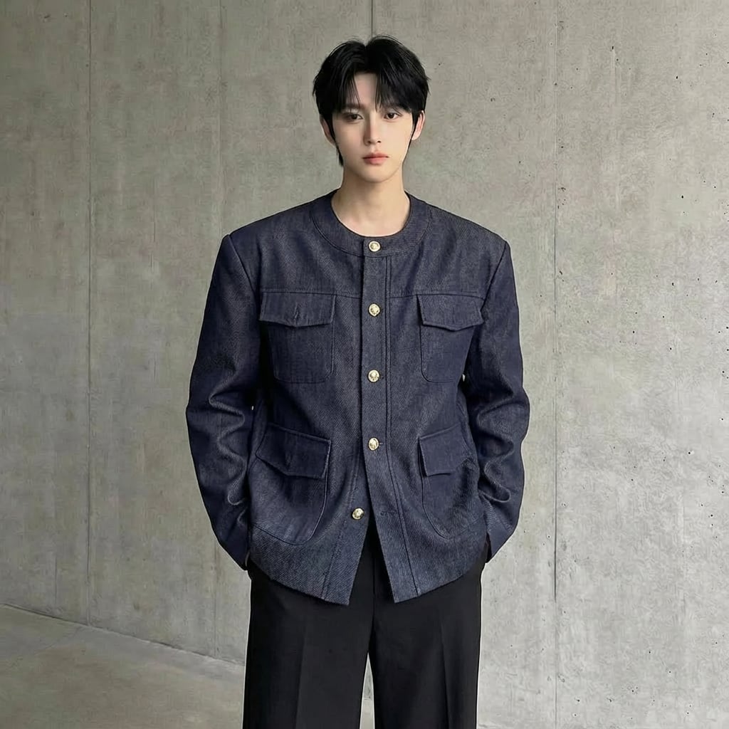 ノーカラーレトロデニムジャケット D11947