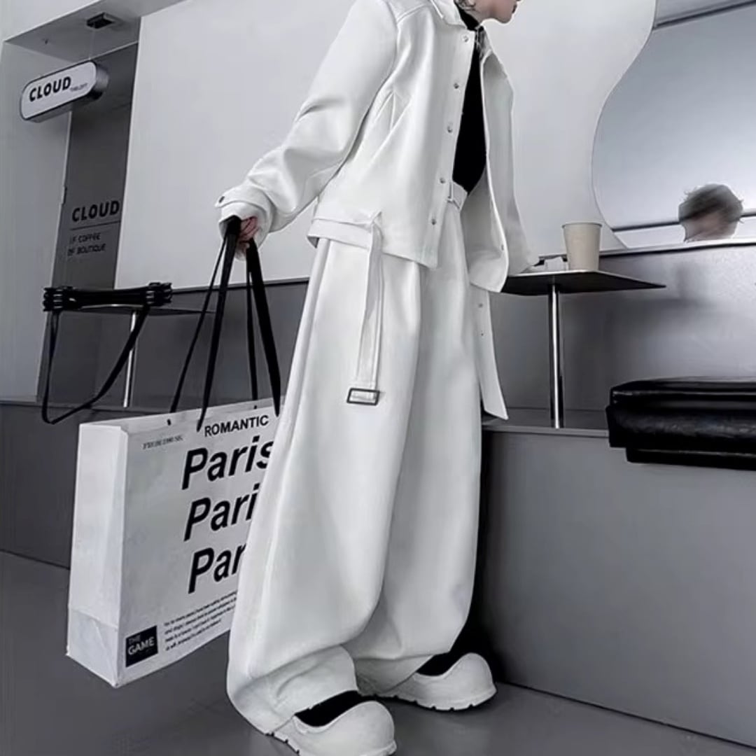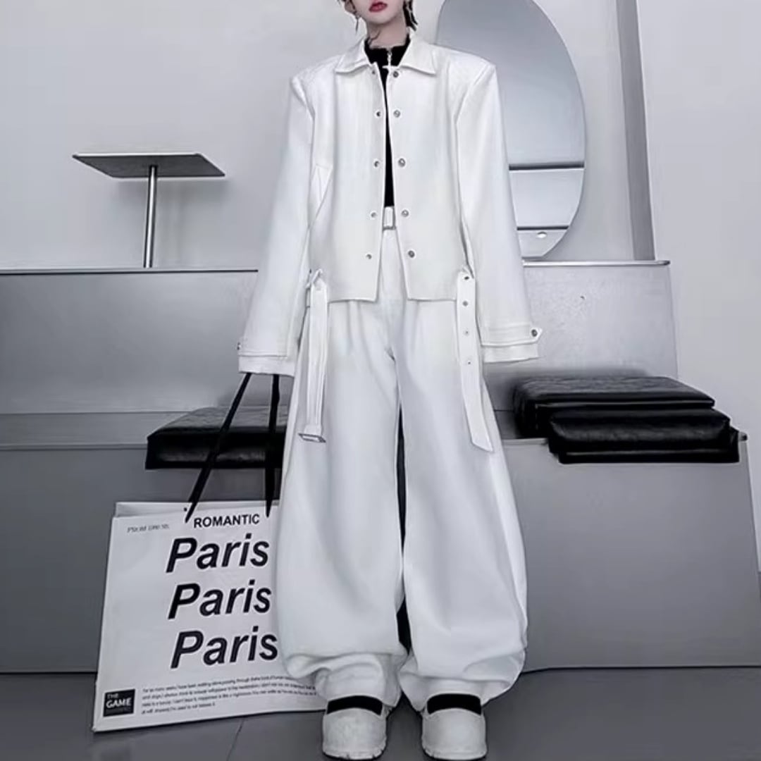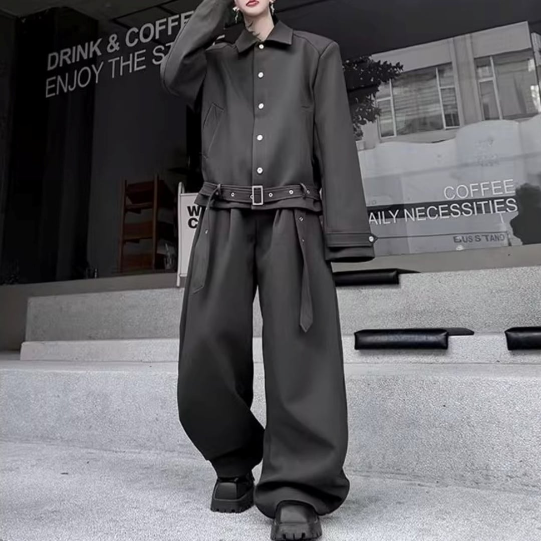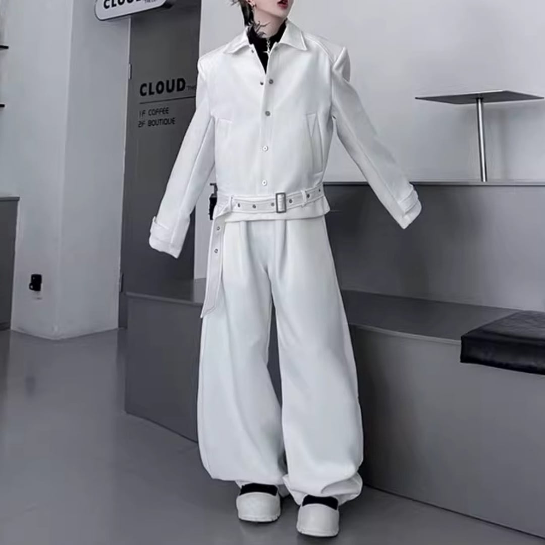 ベルト付きショートジャケット&ワイドパンツ セットアップ 2カラー D11962