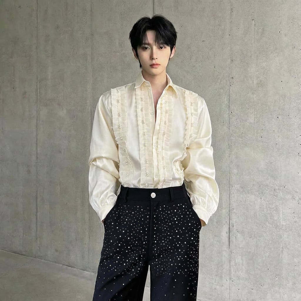 パール装飾フリルデザインシャツ D11951