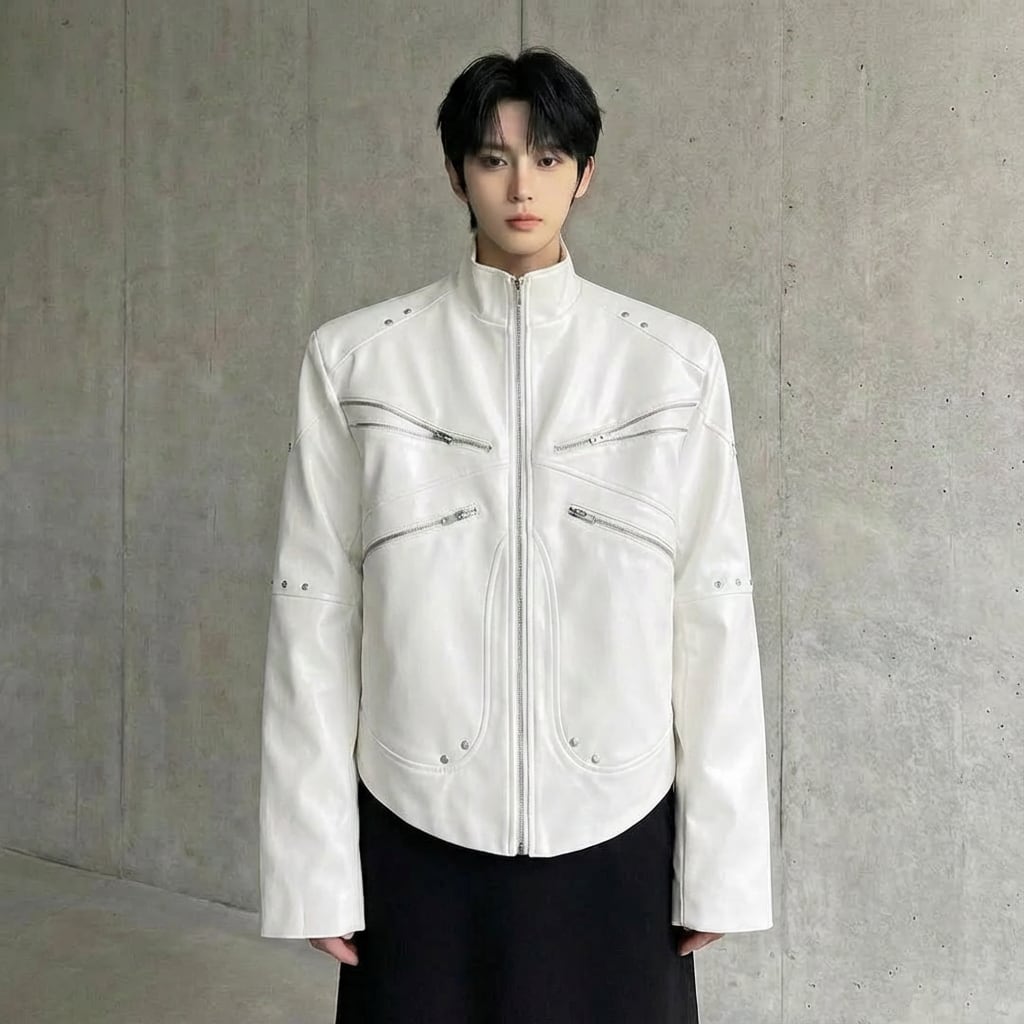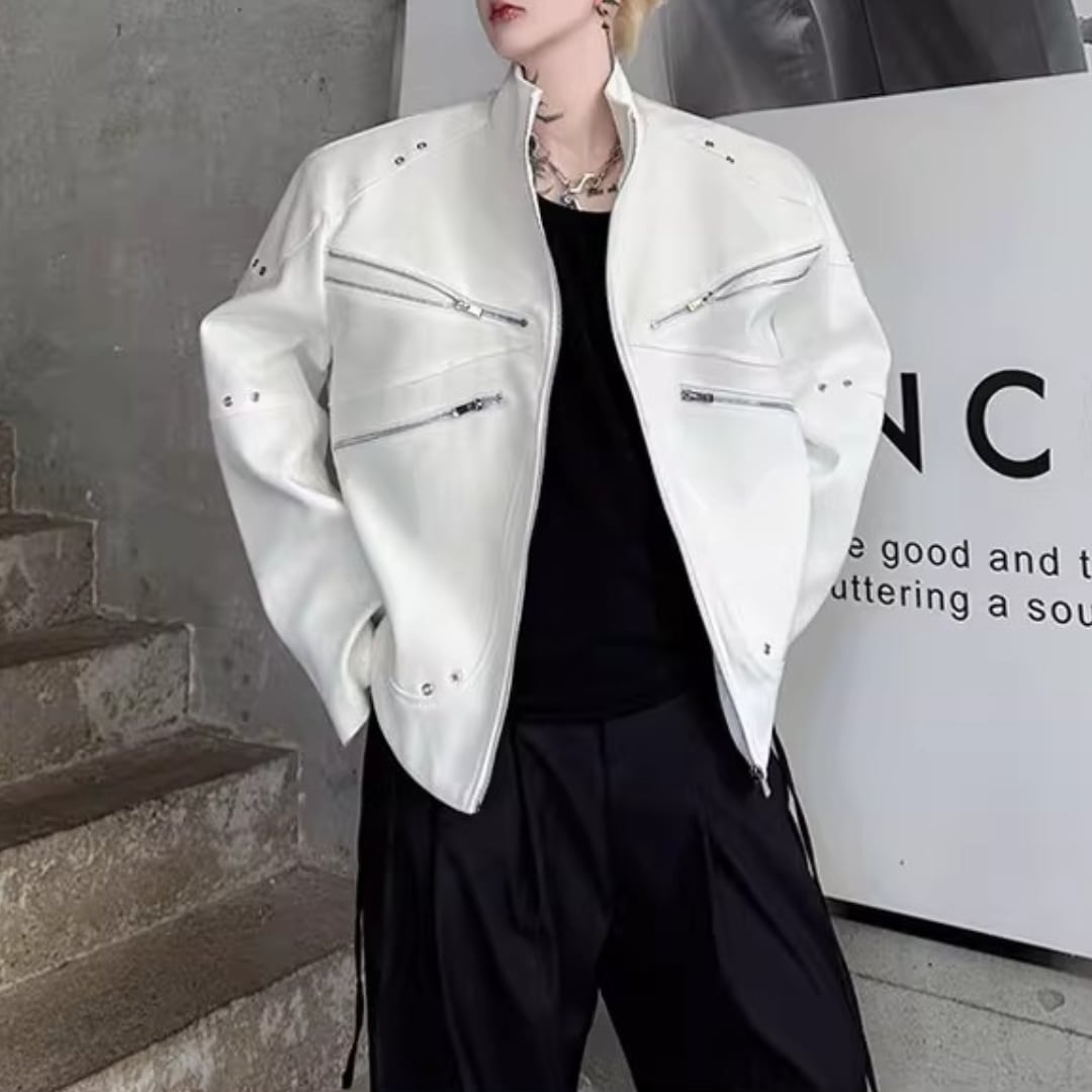 メタルジッパーデザインスタンドカラージャケット 2カラー D11957