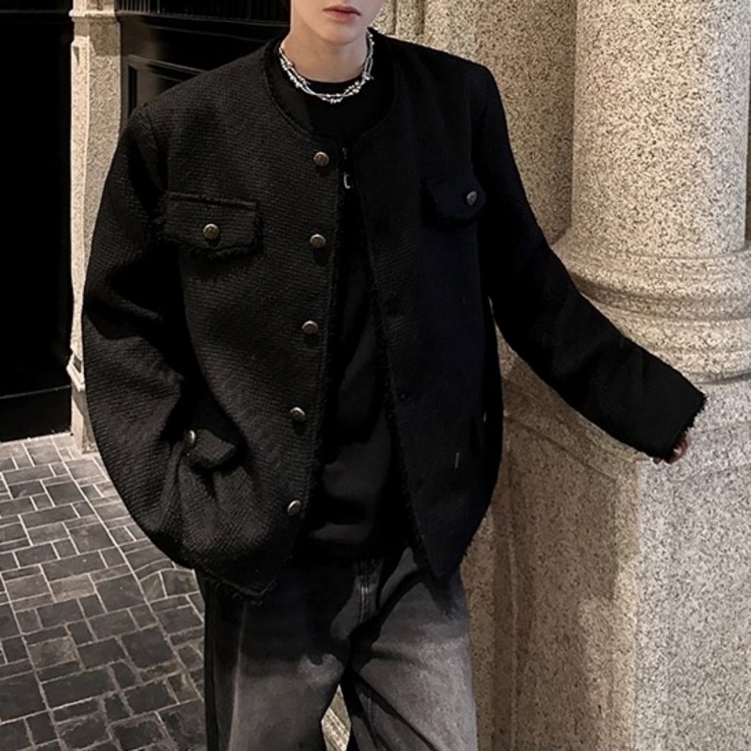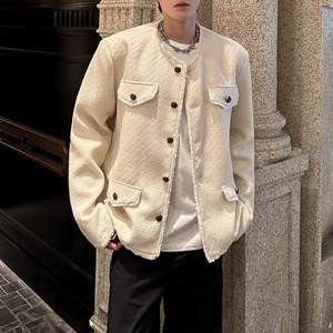 エレガント ツイード調ノーカラージャケット 2カラー D11969