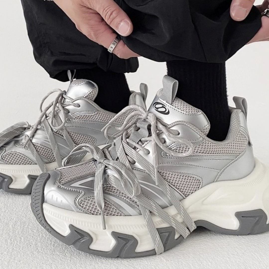 ダブルシューレース 厚底ダッドスニーカー 2カラー D11974