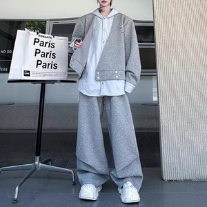 ビッグシルエットレイヤード風フード付きトップ&スウェットパンツセットアップ 2カラー D11989