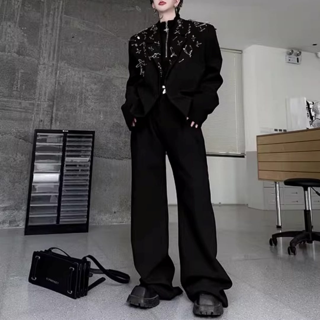 メタルピン装飾 ルーズシルエット セットアップスーツ D11992