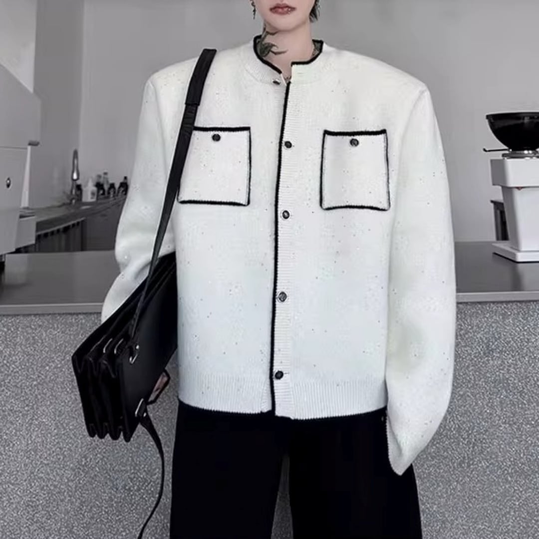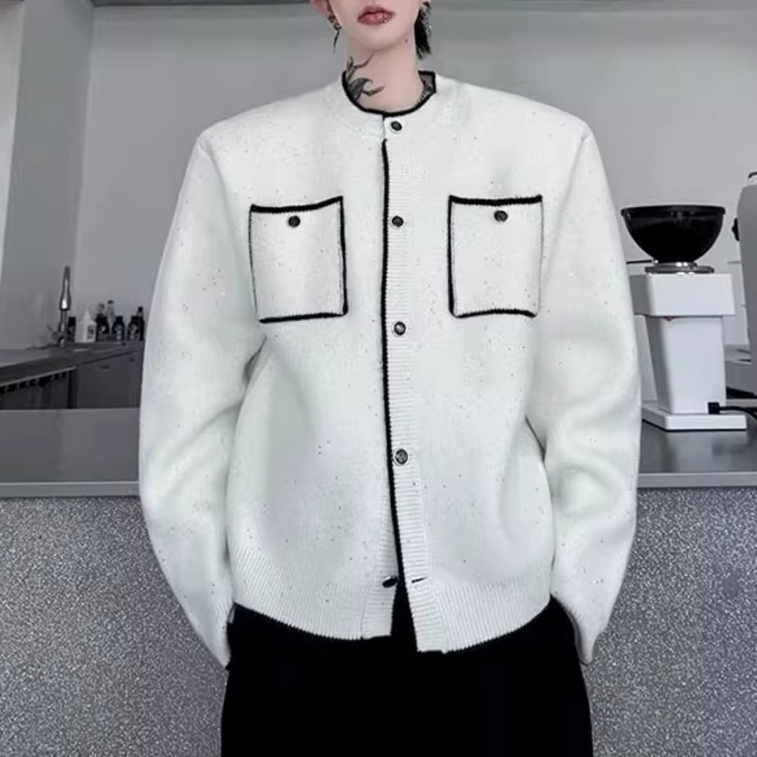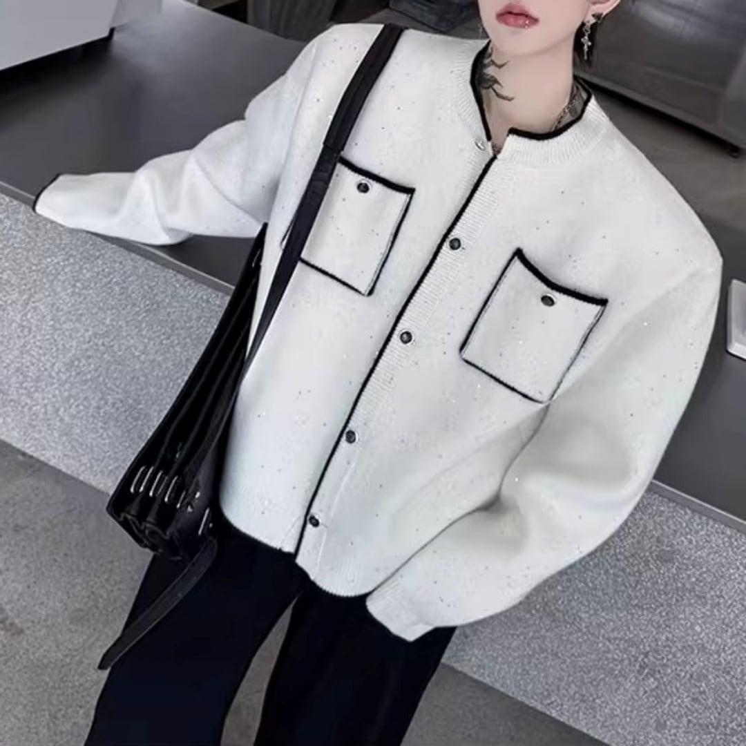 バイカラートリミング ルーズグリッターニットカーディガン 2カラー D11995
