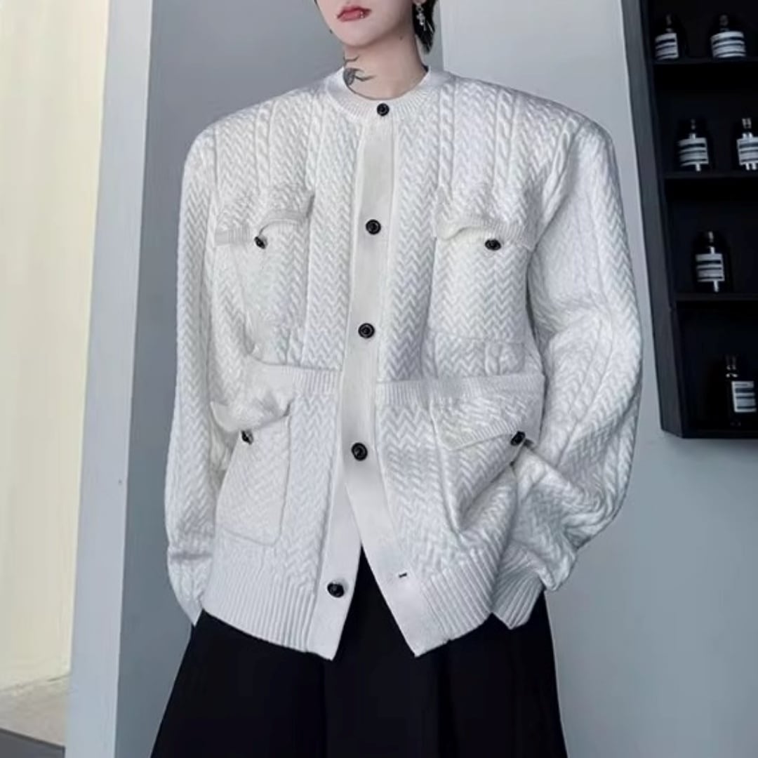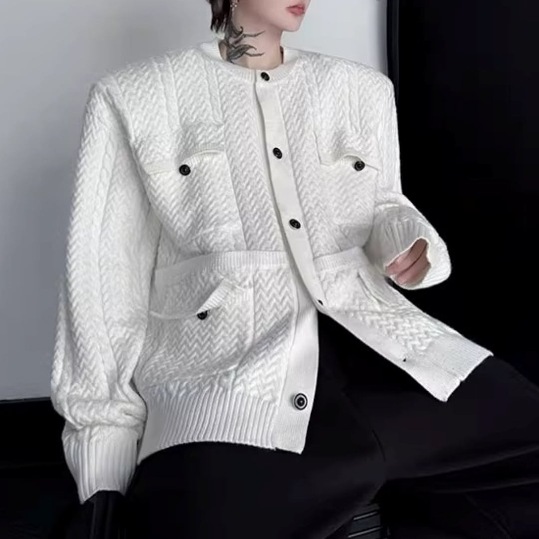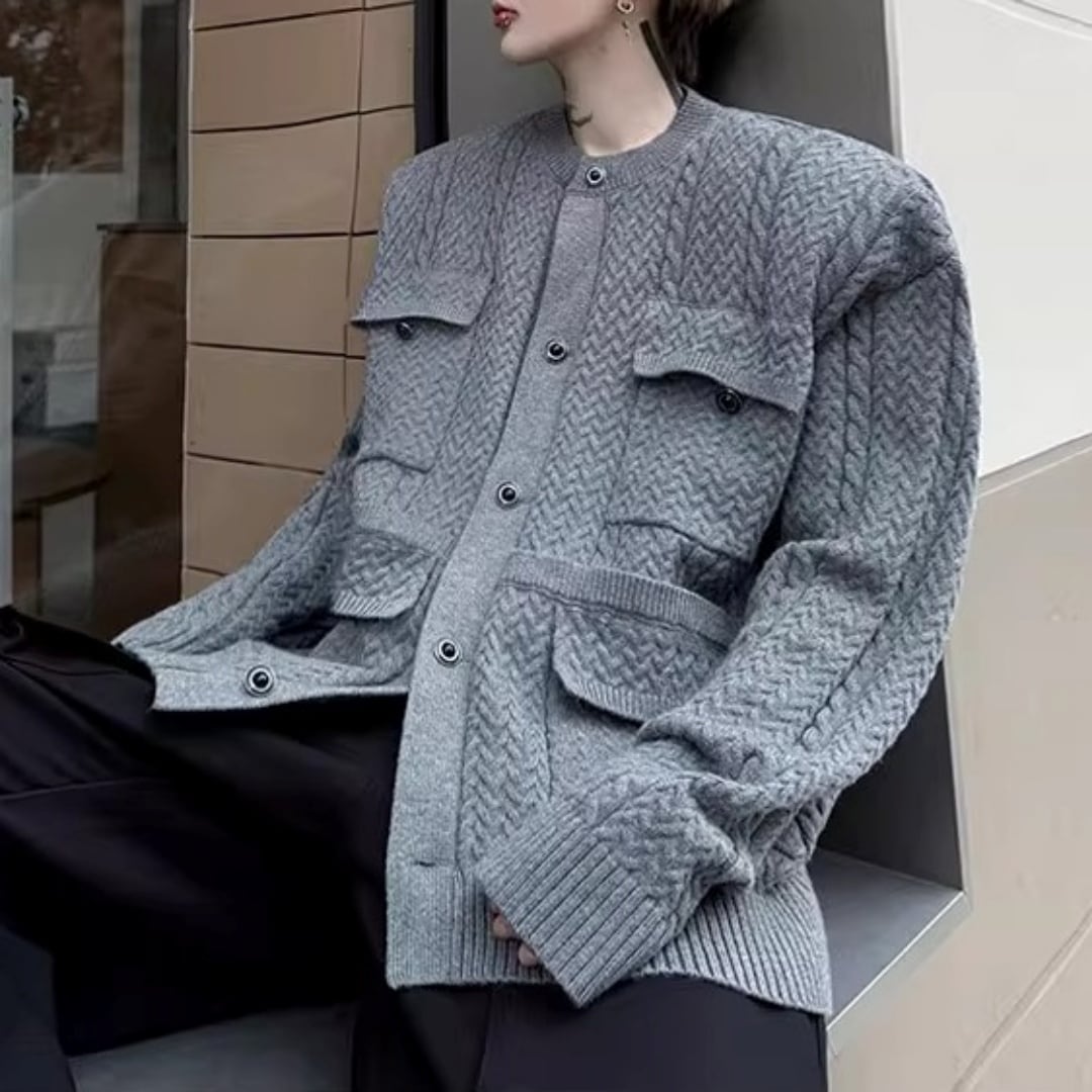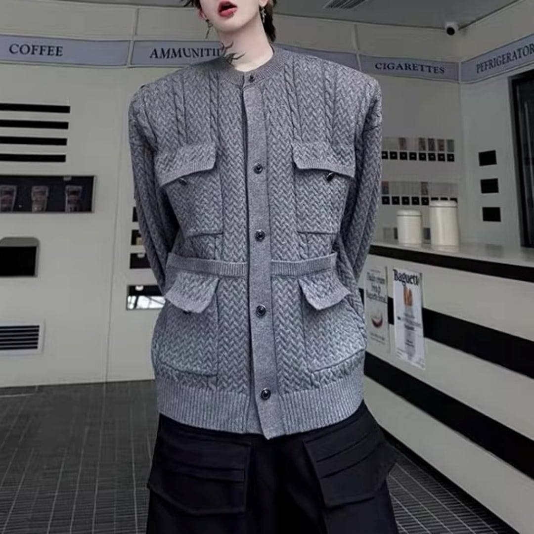 フラップポケット ケーブル編みニットカーディガン 3カラー D11996