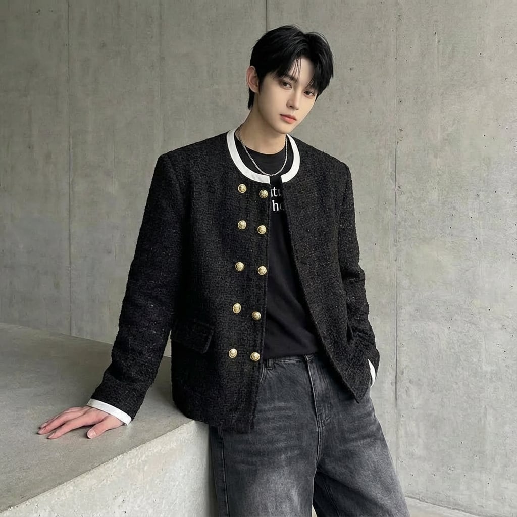 クラシックモード ノーカラーゴールドボタンジャケット D12002