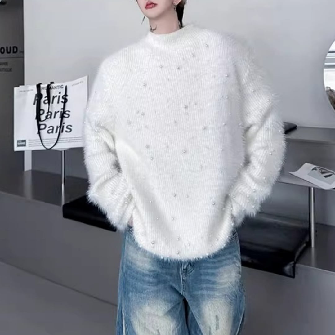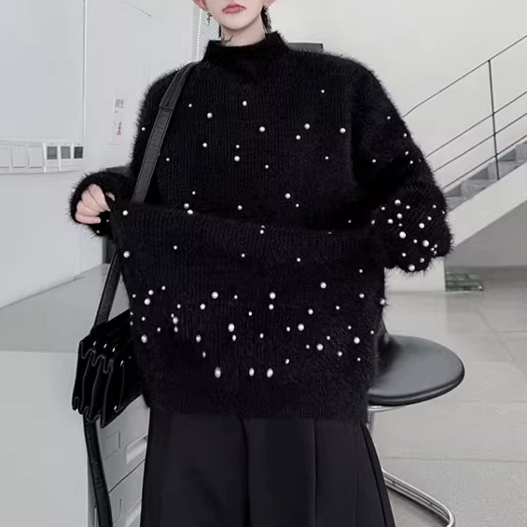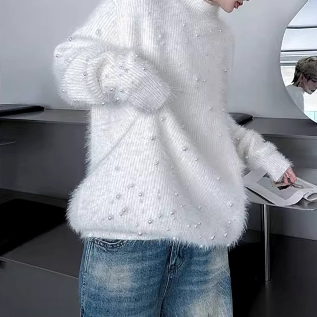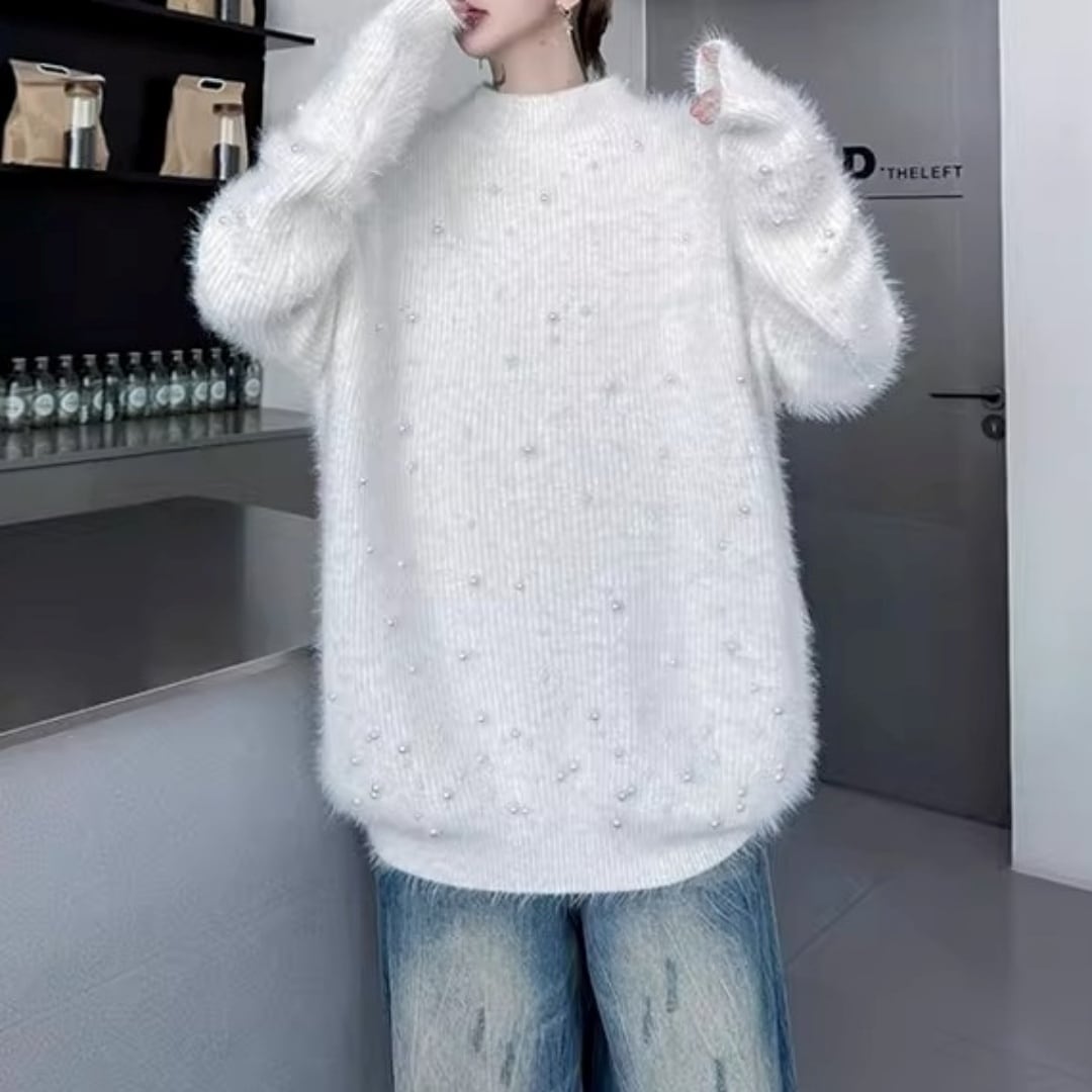 オーバーサイズ パールシャギーニット 2カラー D12019