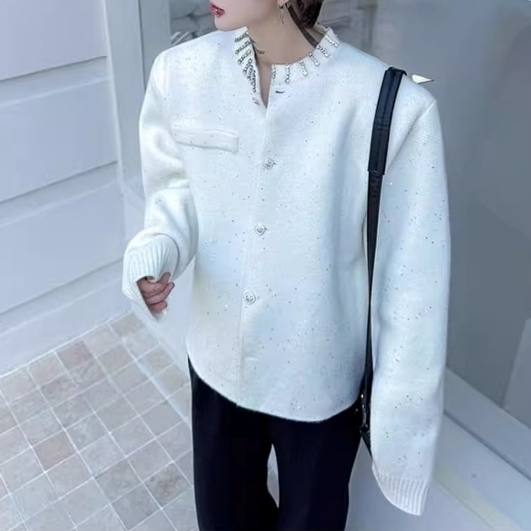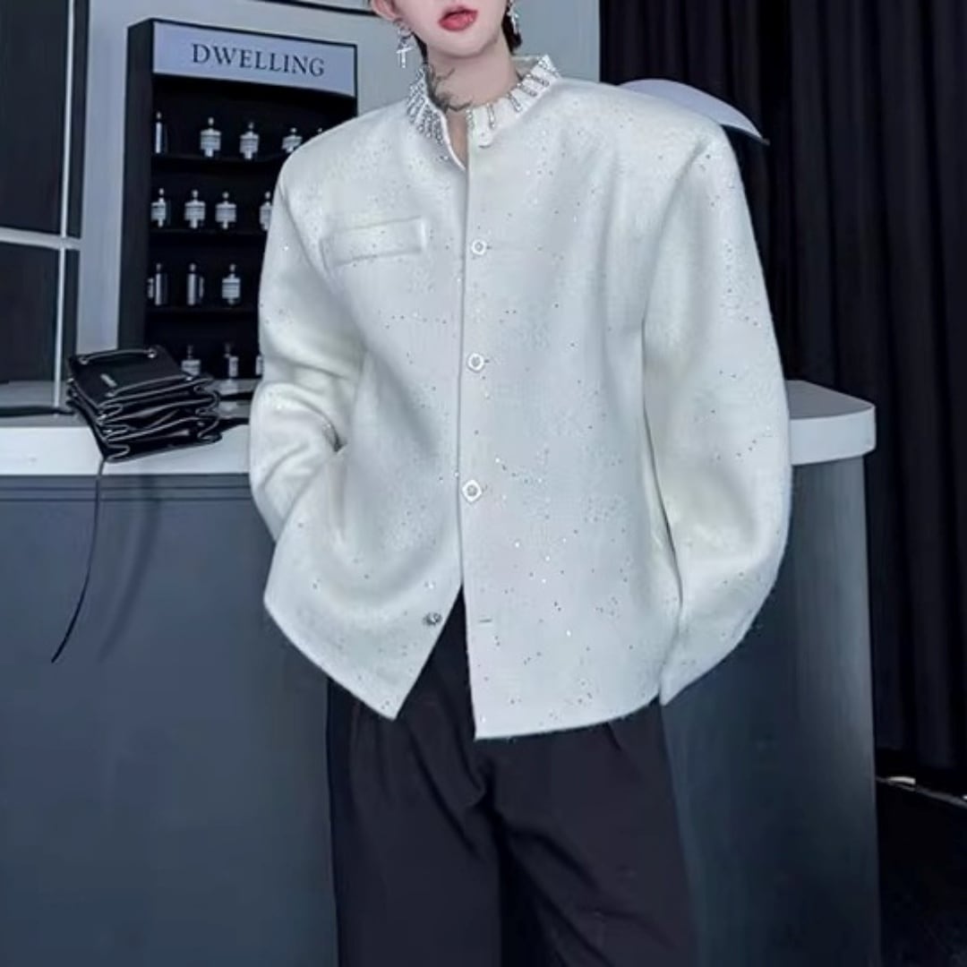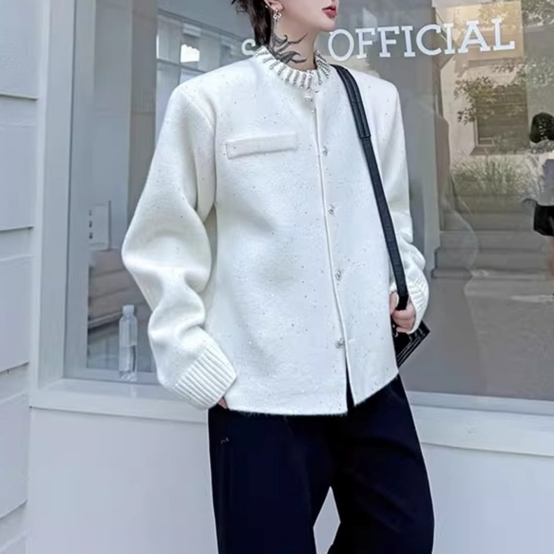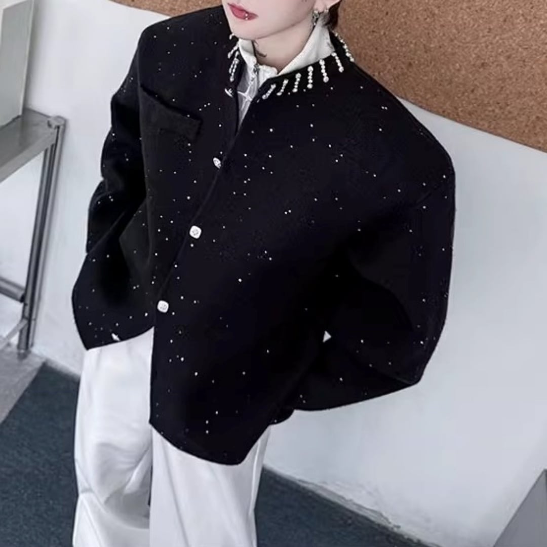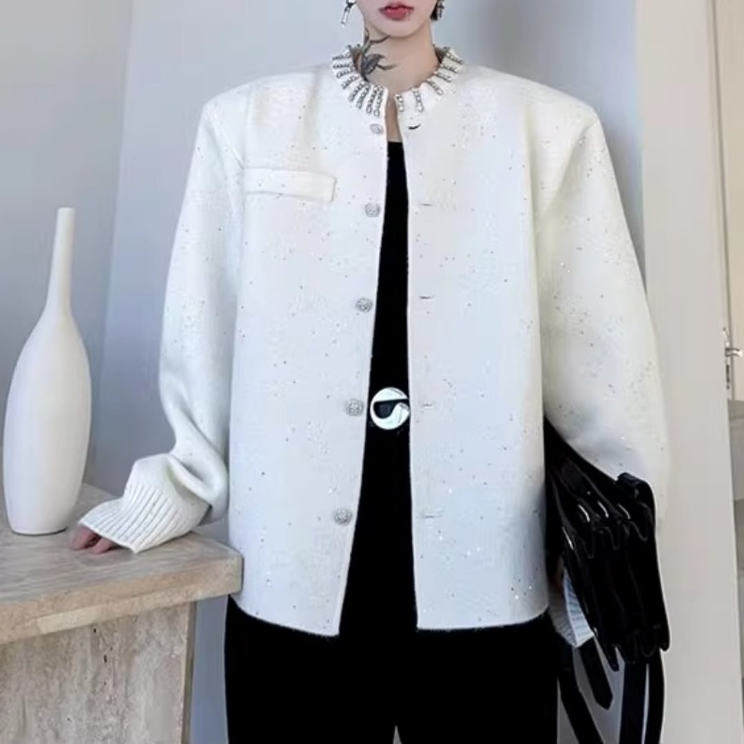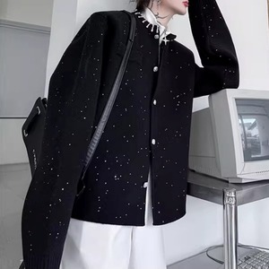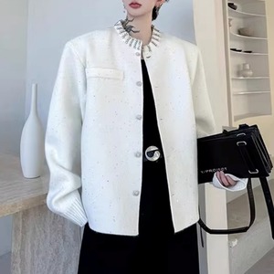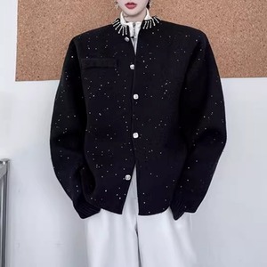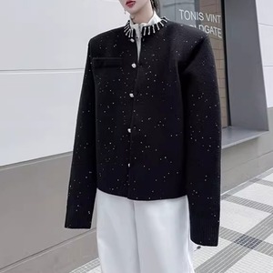 ビジューネック グリッターノーカラージャケット 2カラー D12021