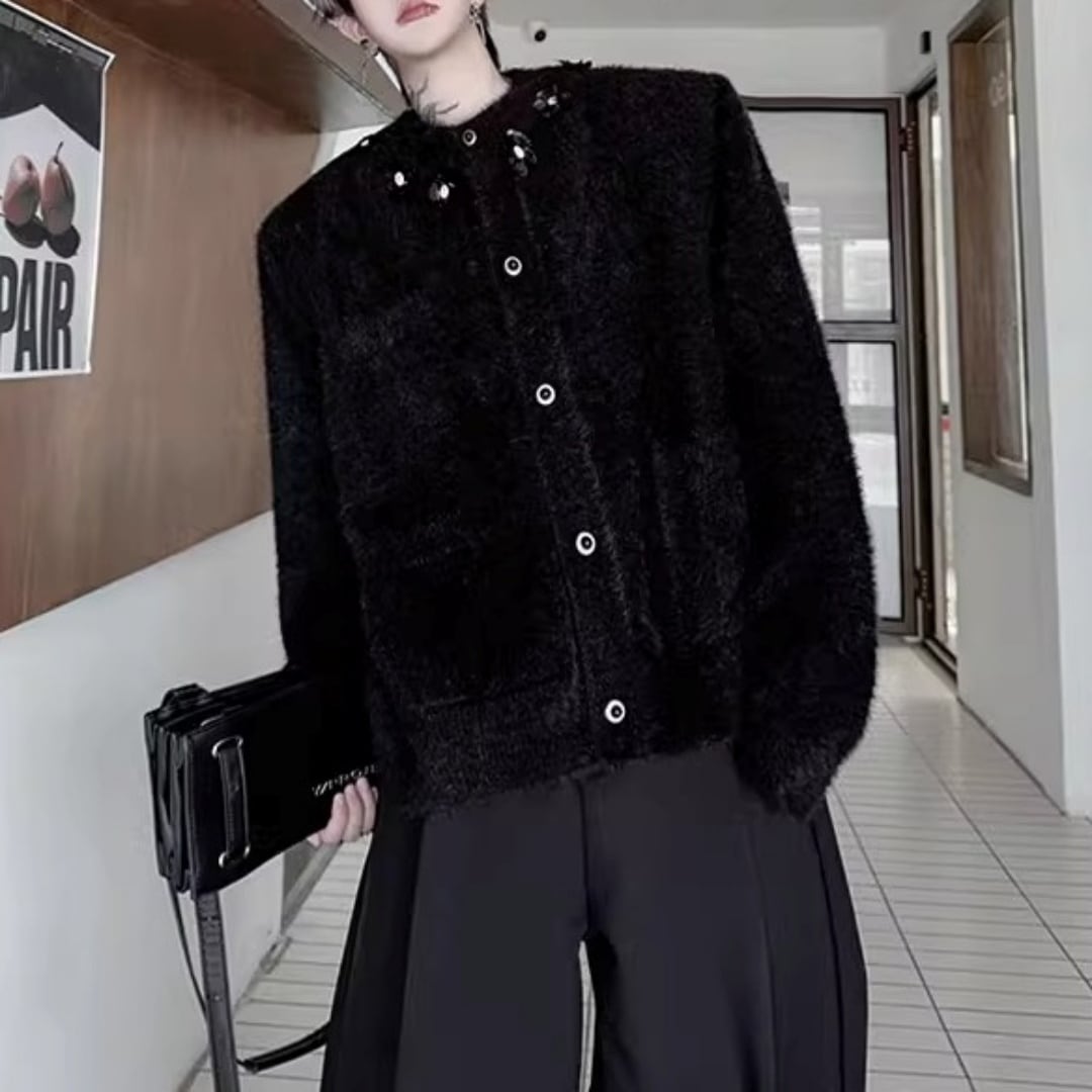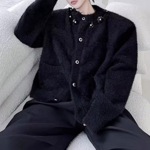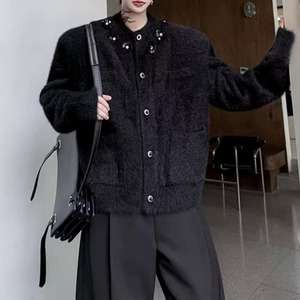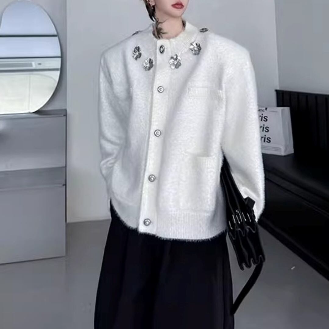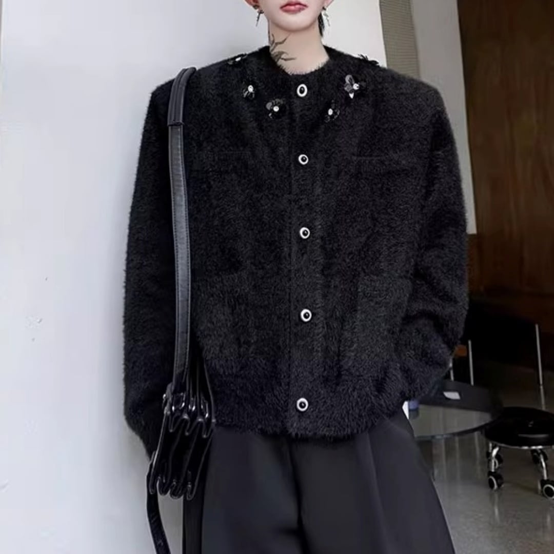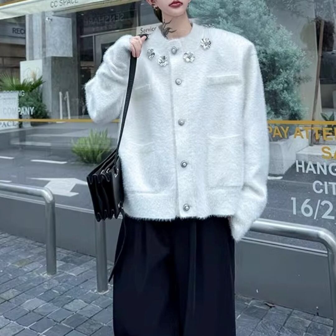 フラワーモチーフ シャギーニットカーディガン 2カラー D12022