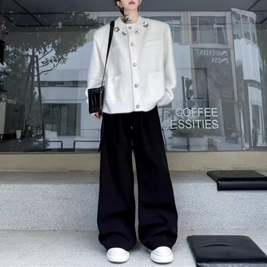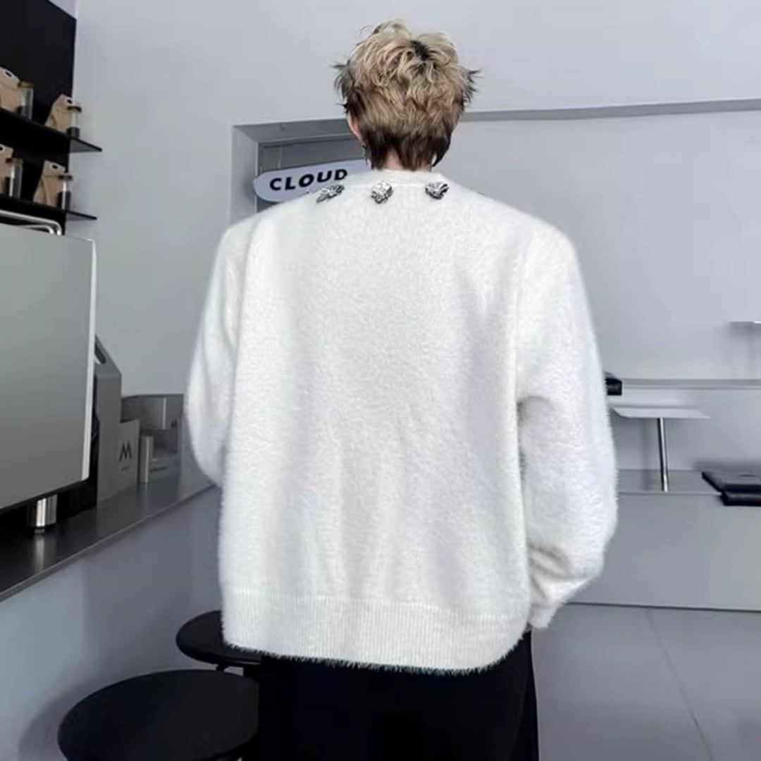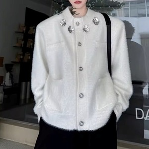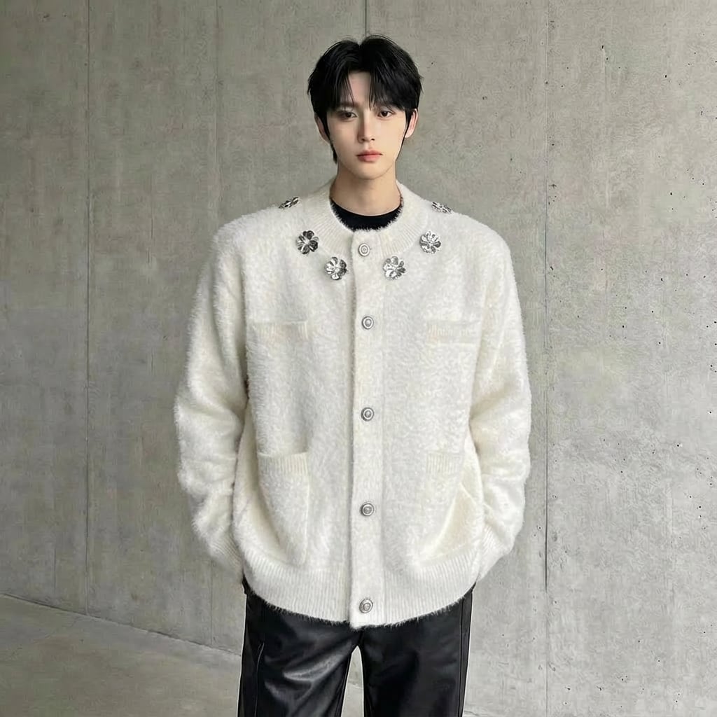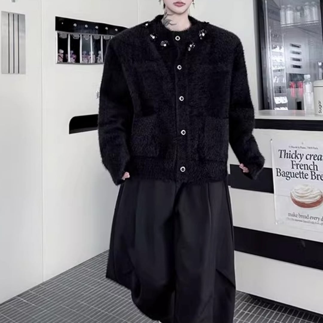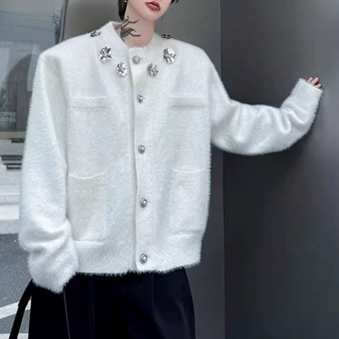 フラワーモチーフ シャギーニットカーディガン 2カラー D12022