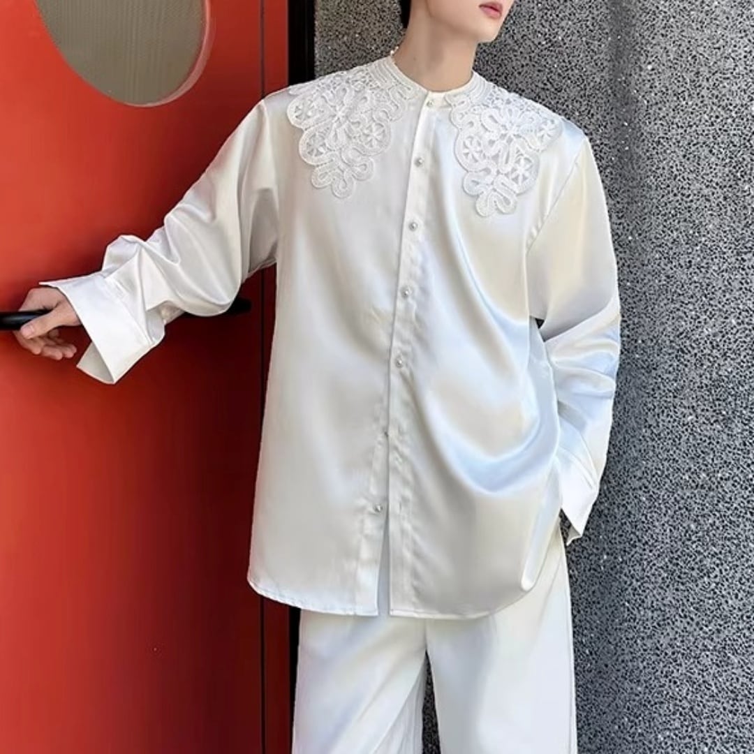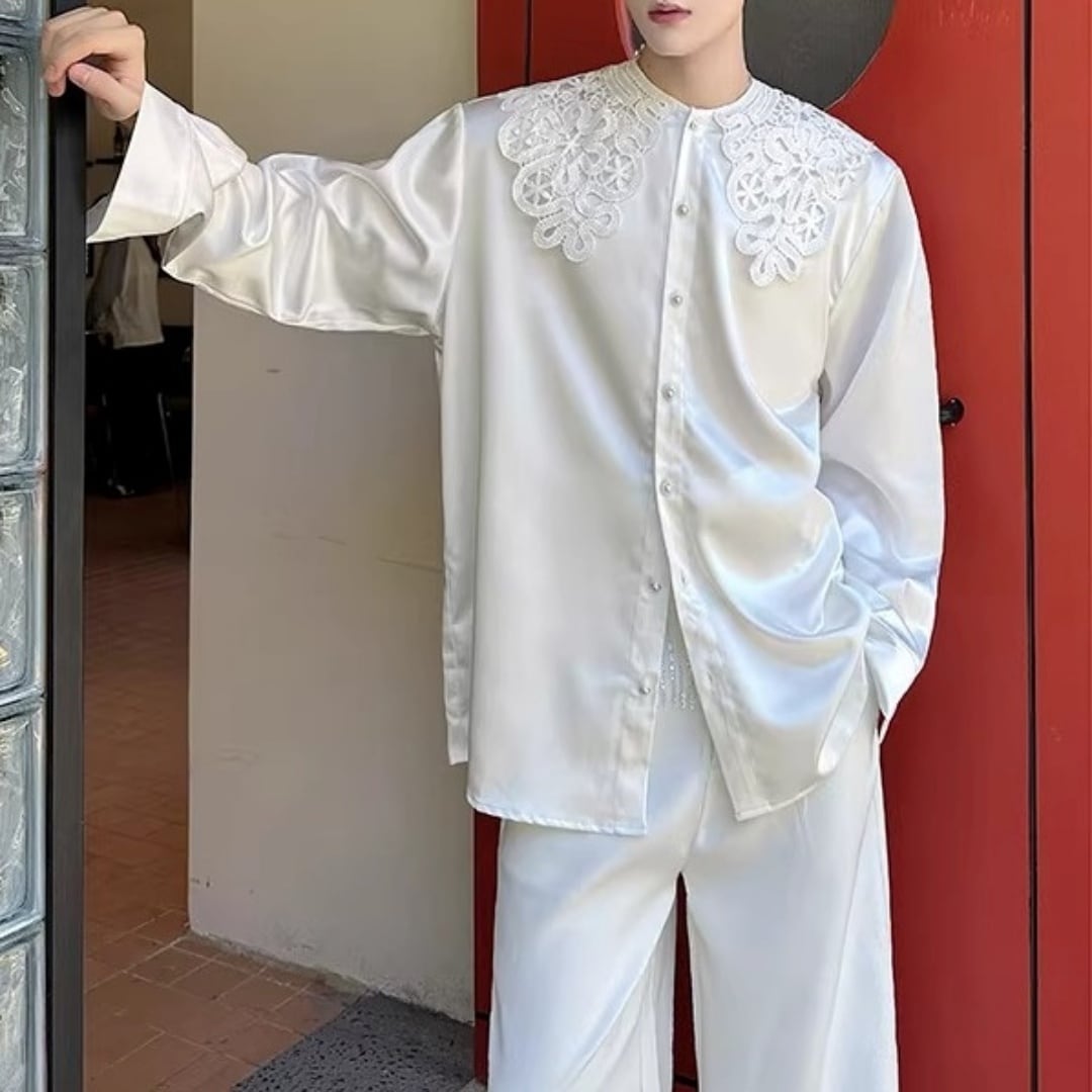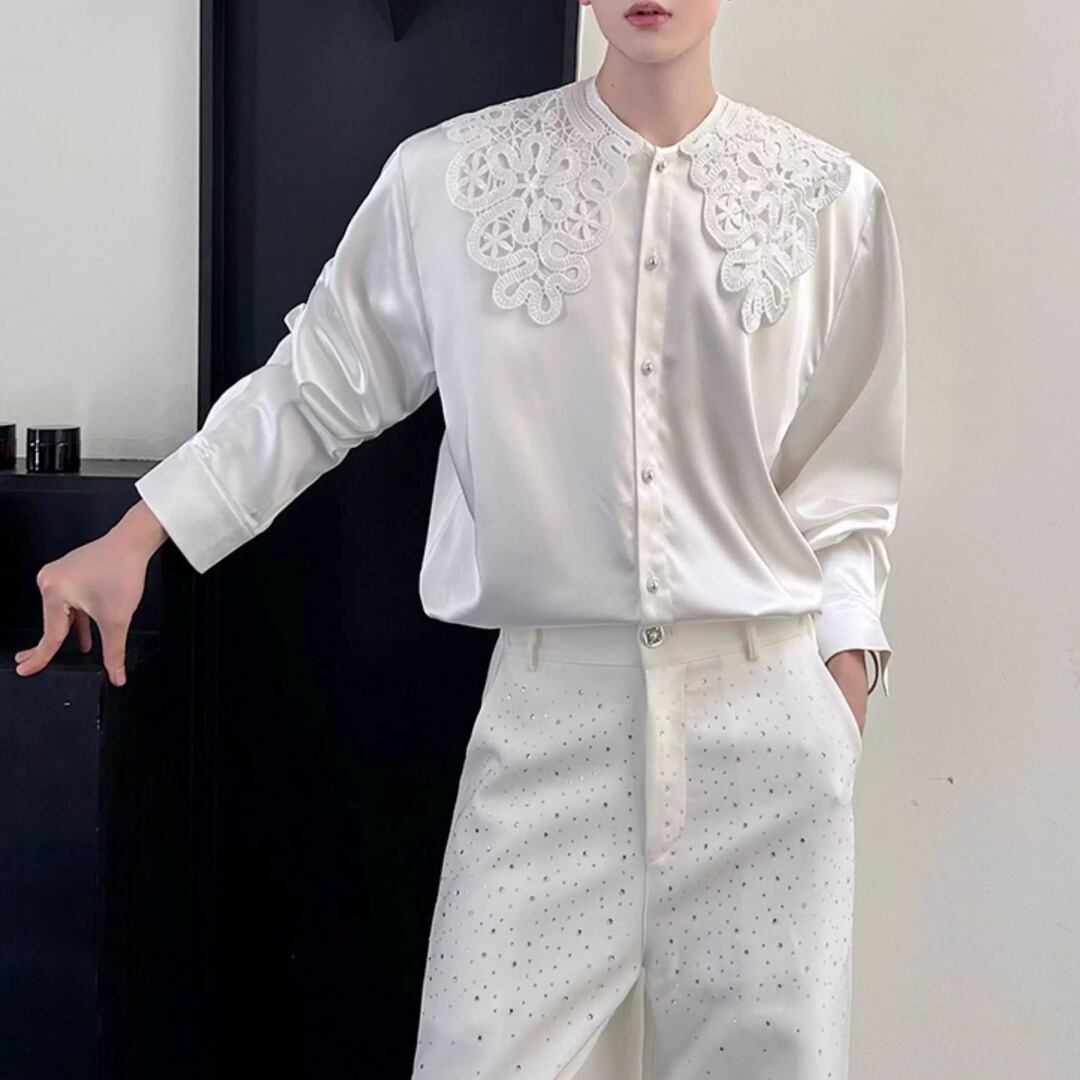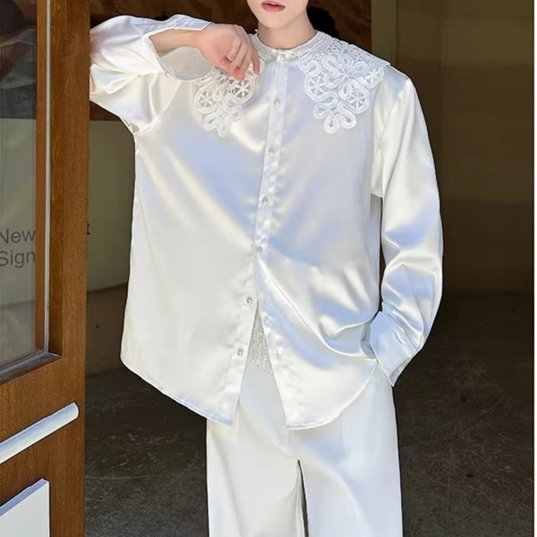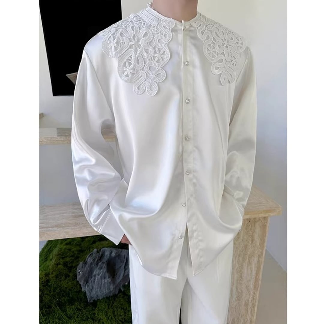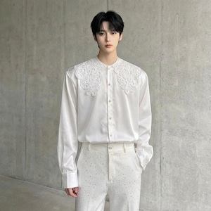ビッグレースカラー ノーブルドレープシャツ D12024