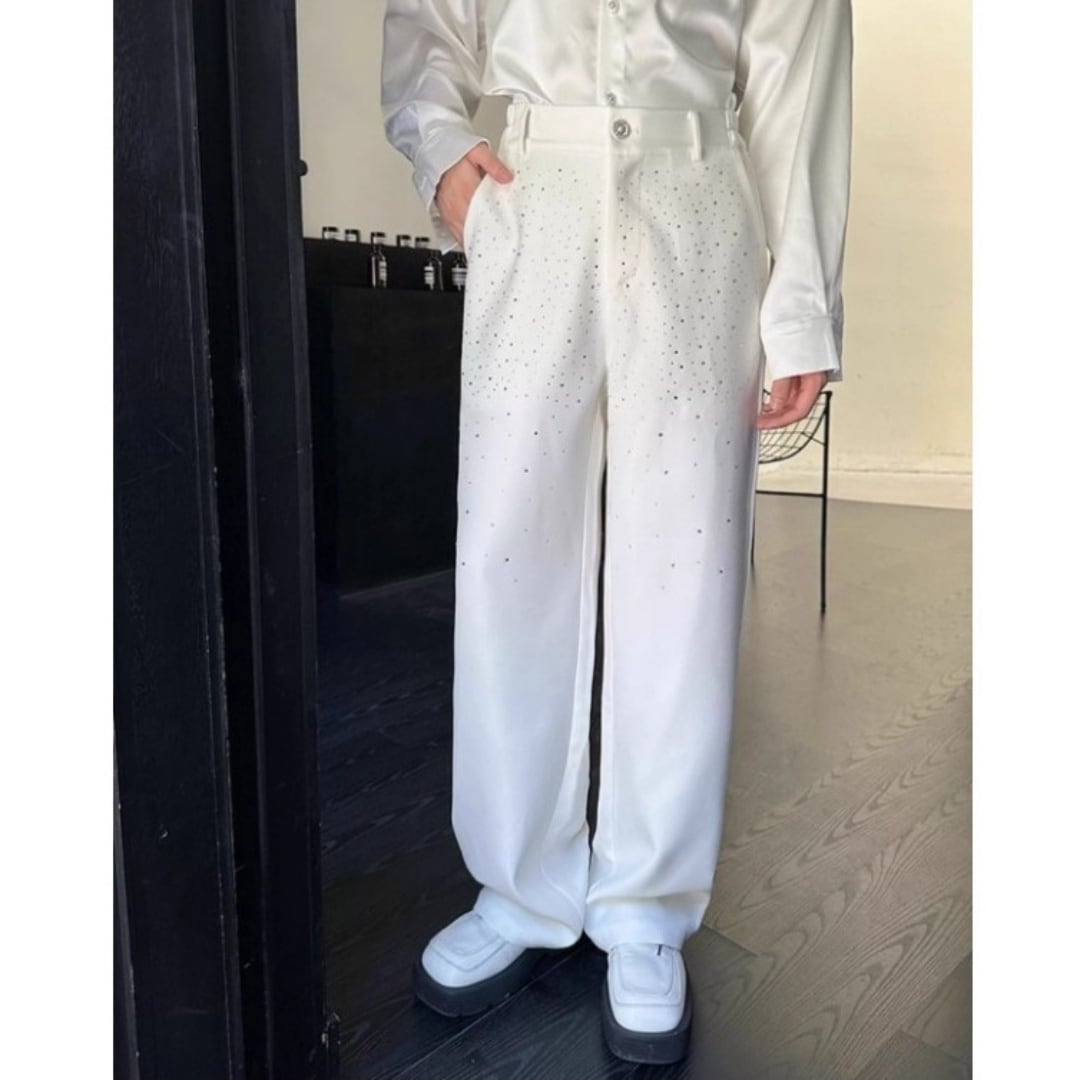 ラインストーン付き ワイドレッグパンツ 2カラー D12025