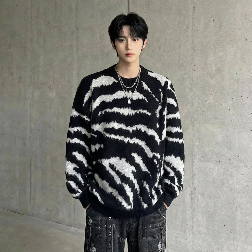 ゼブラ柄 オーバーサイズシャギーニット D12032