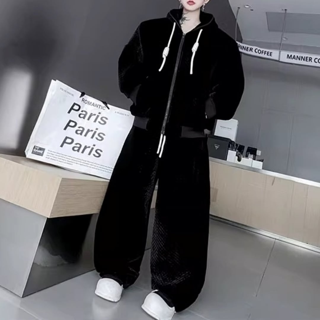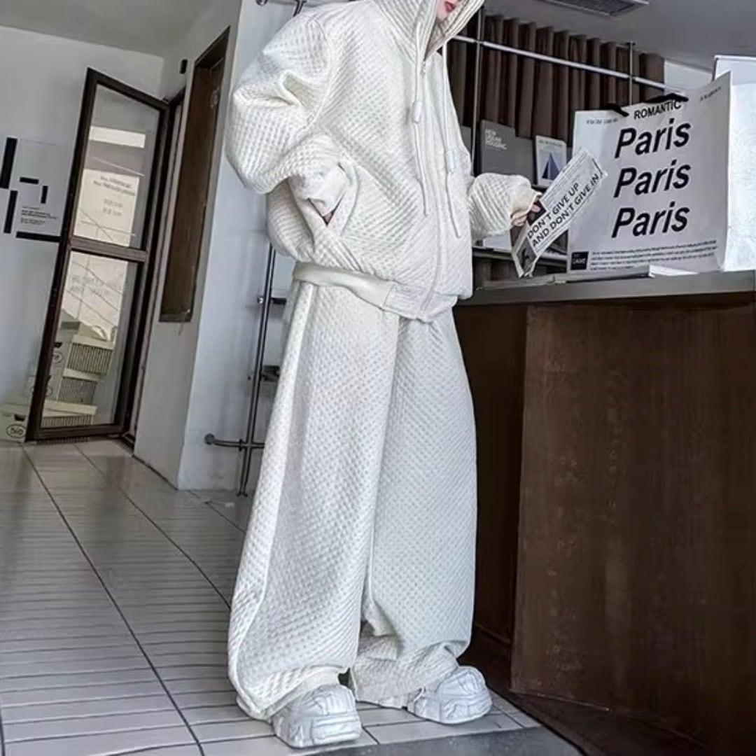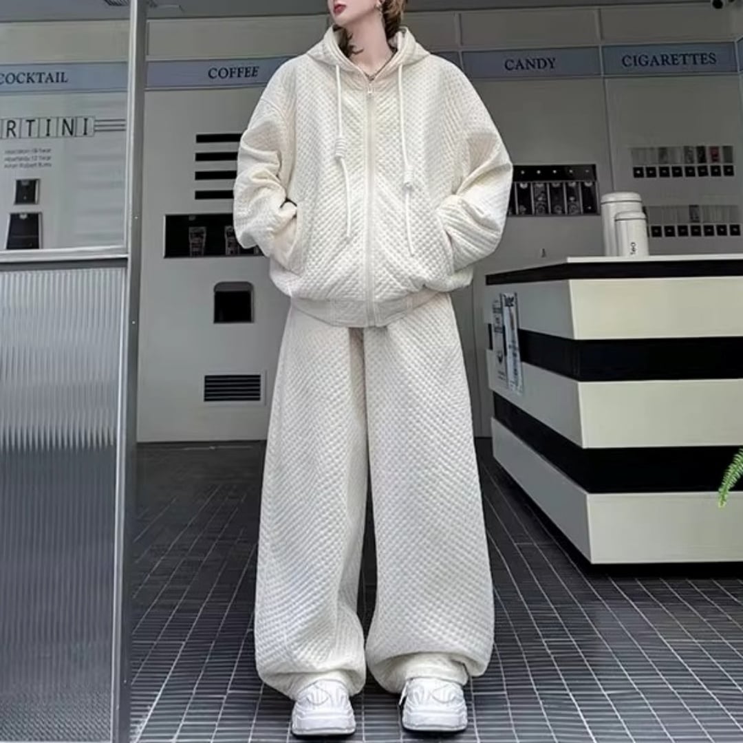 キルティング柄 オーバーサイズフーディーセットアップ 2カラー D12042