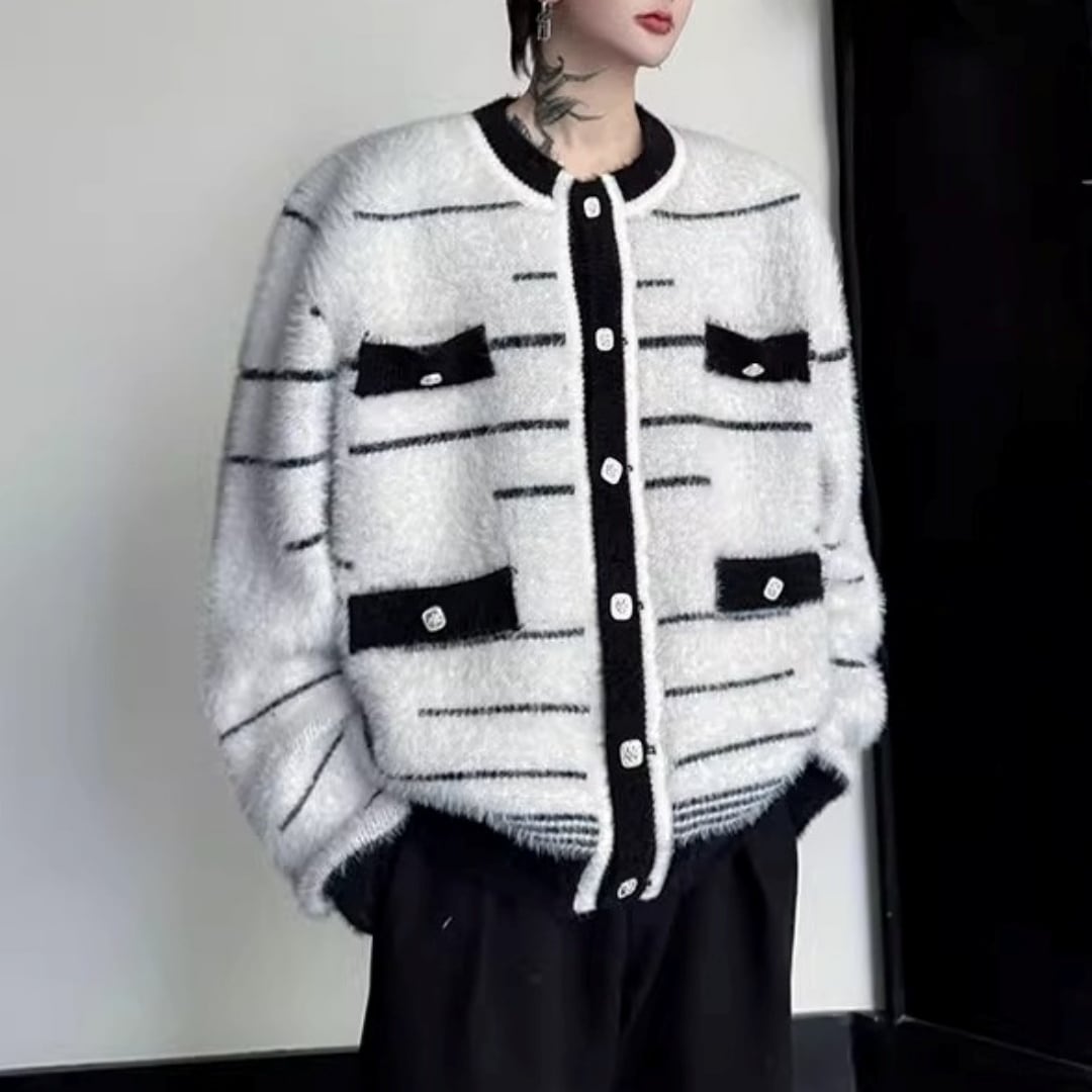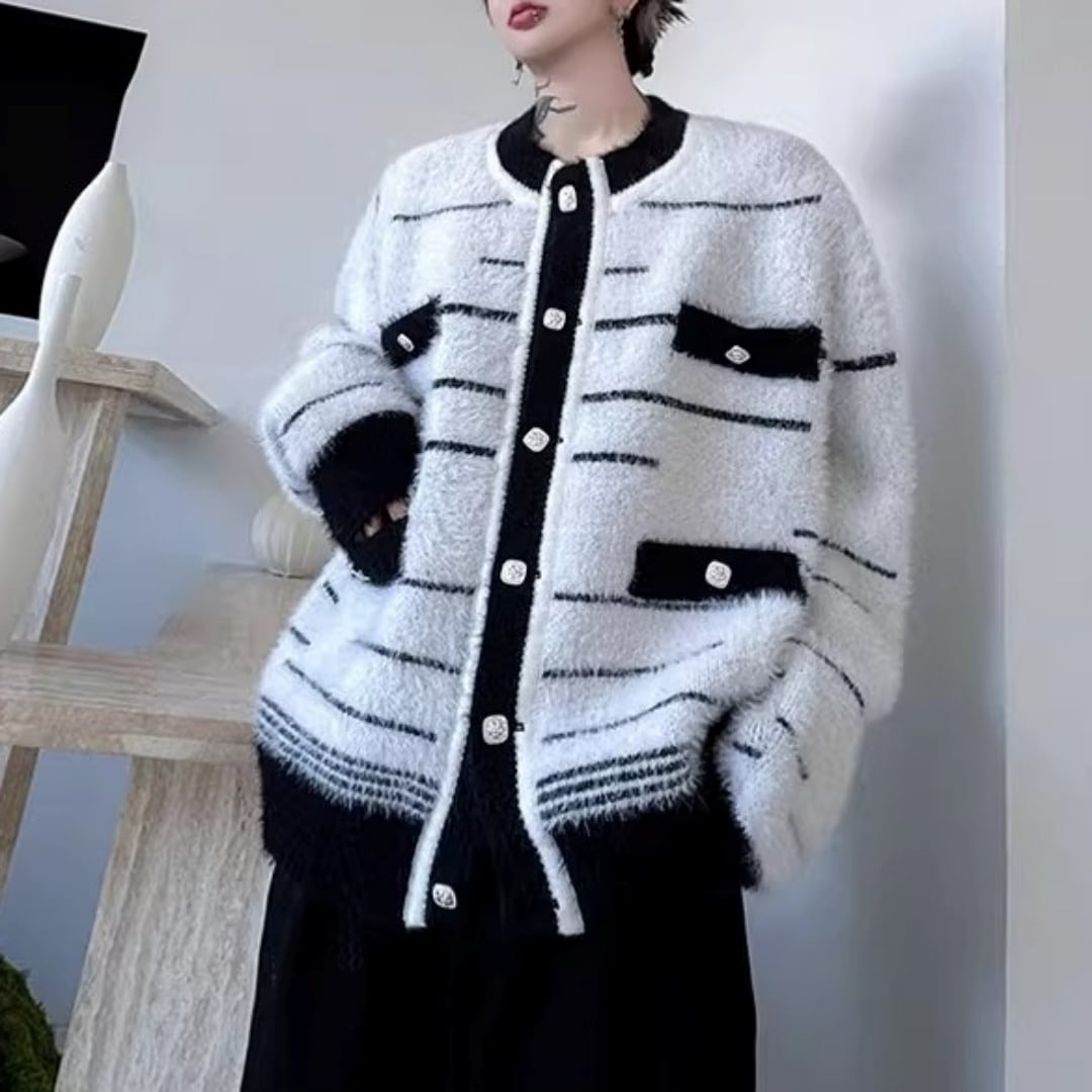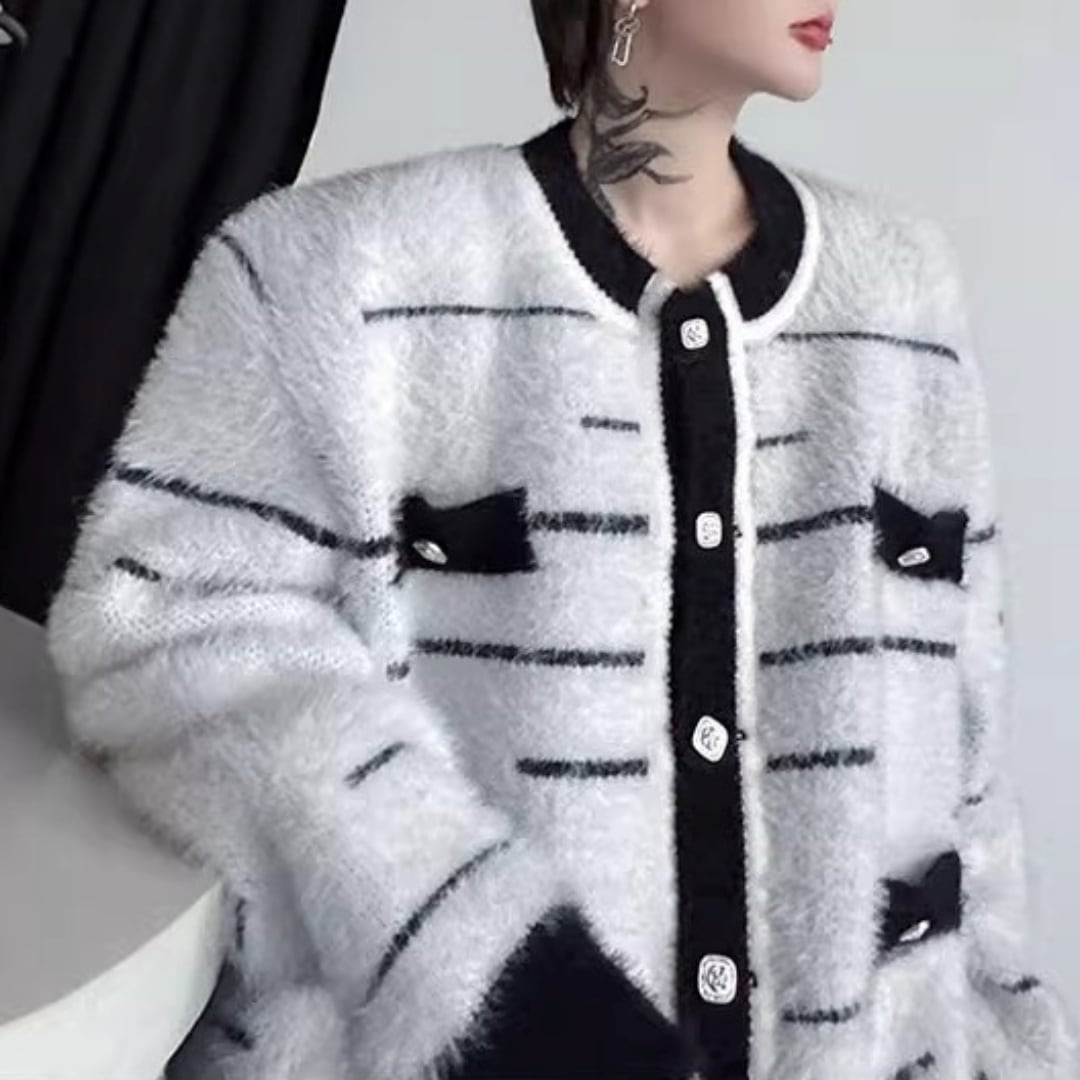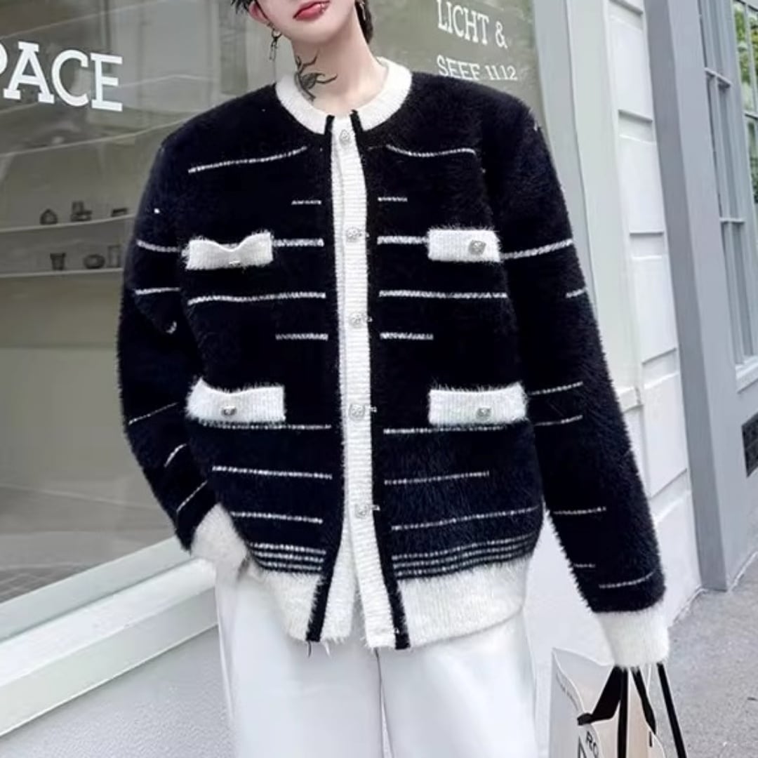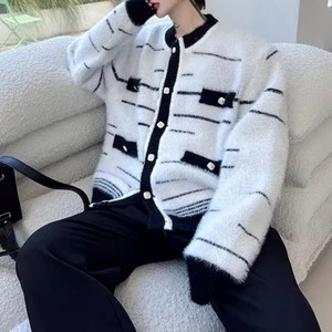 バイカラー ジャカードシャギーニットカーディガン 2カラー D12044