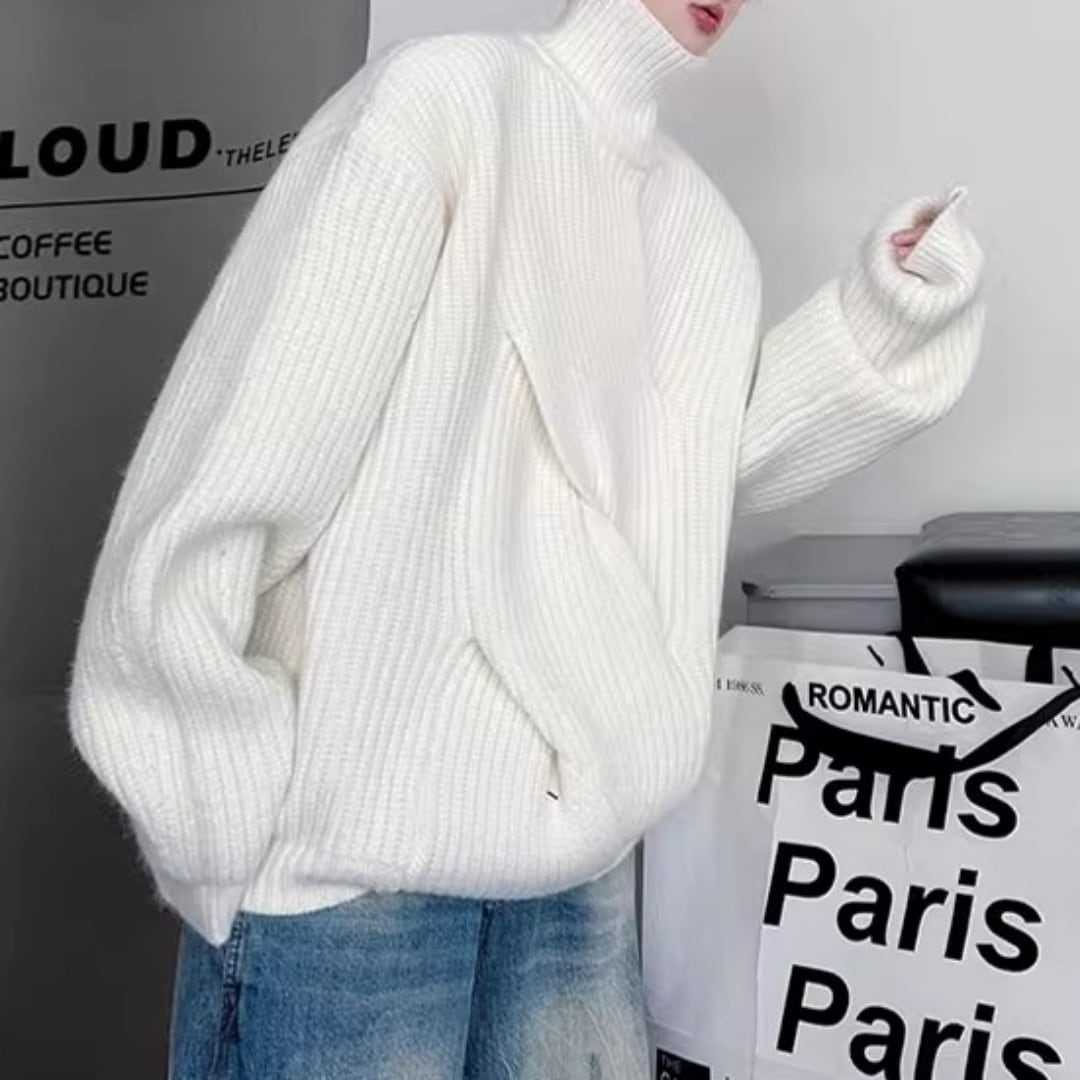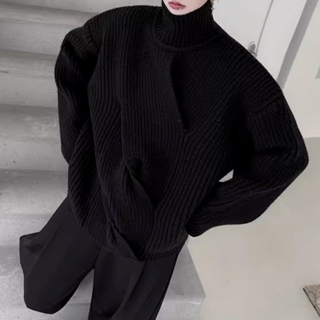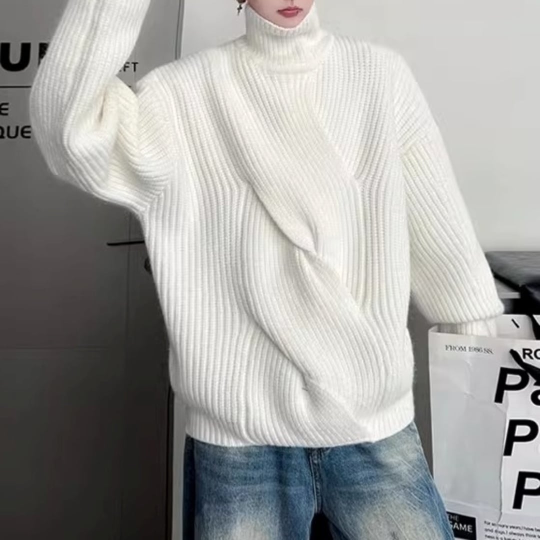 ツイストデザイン リブタートルネックニット 2カラー D12046