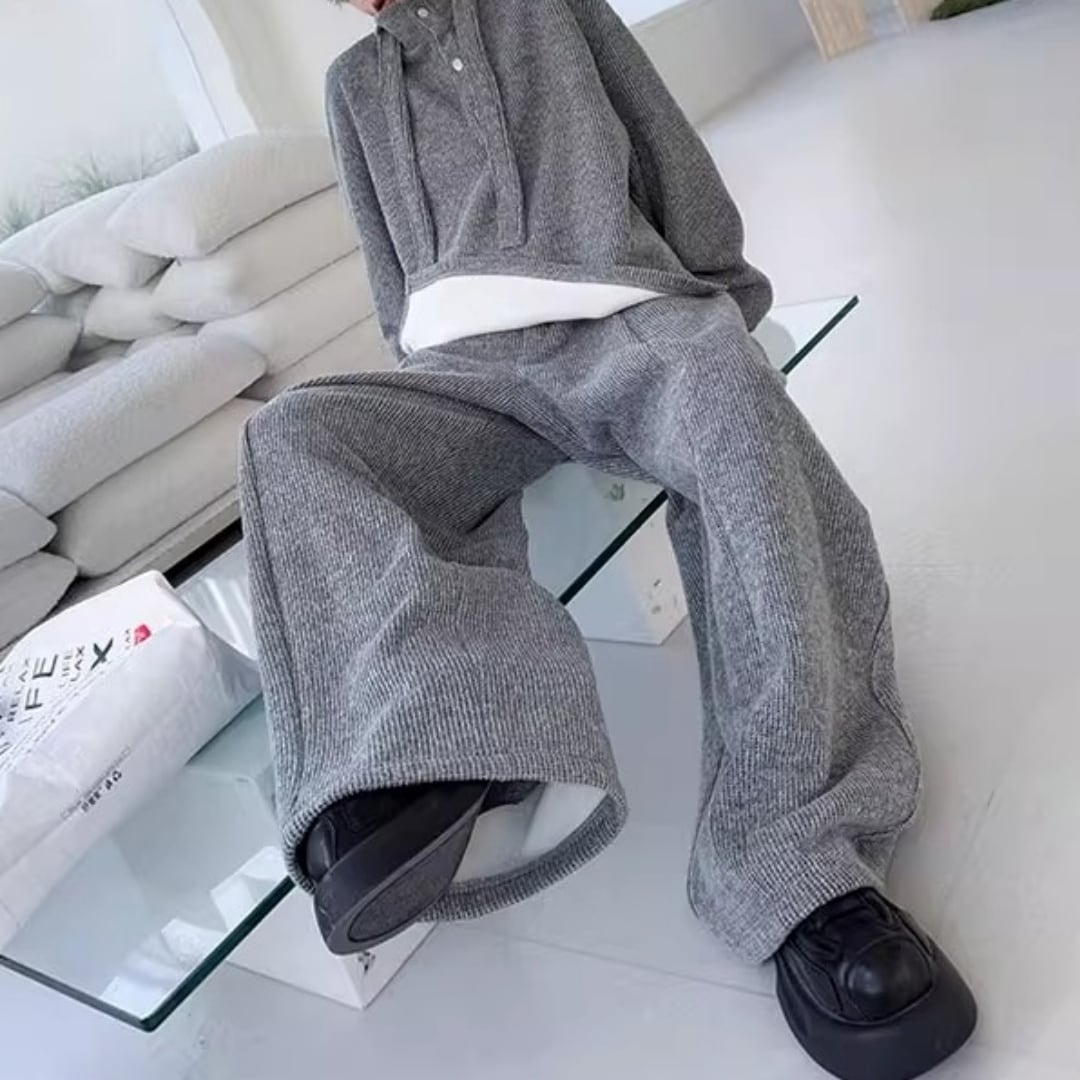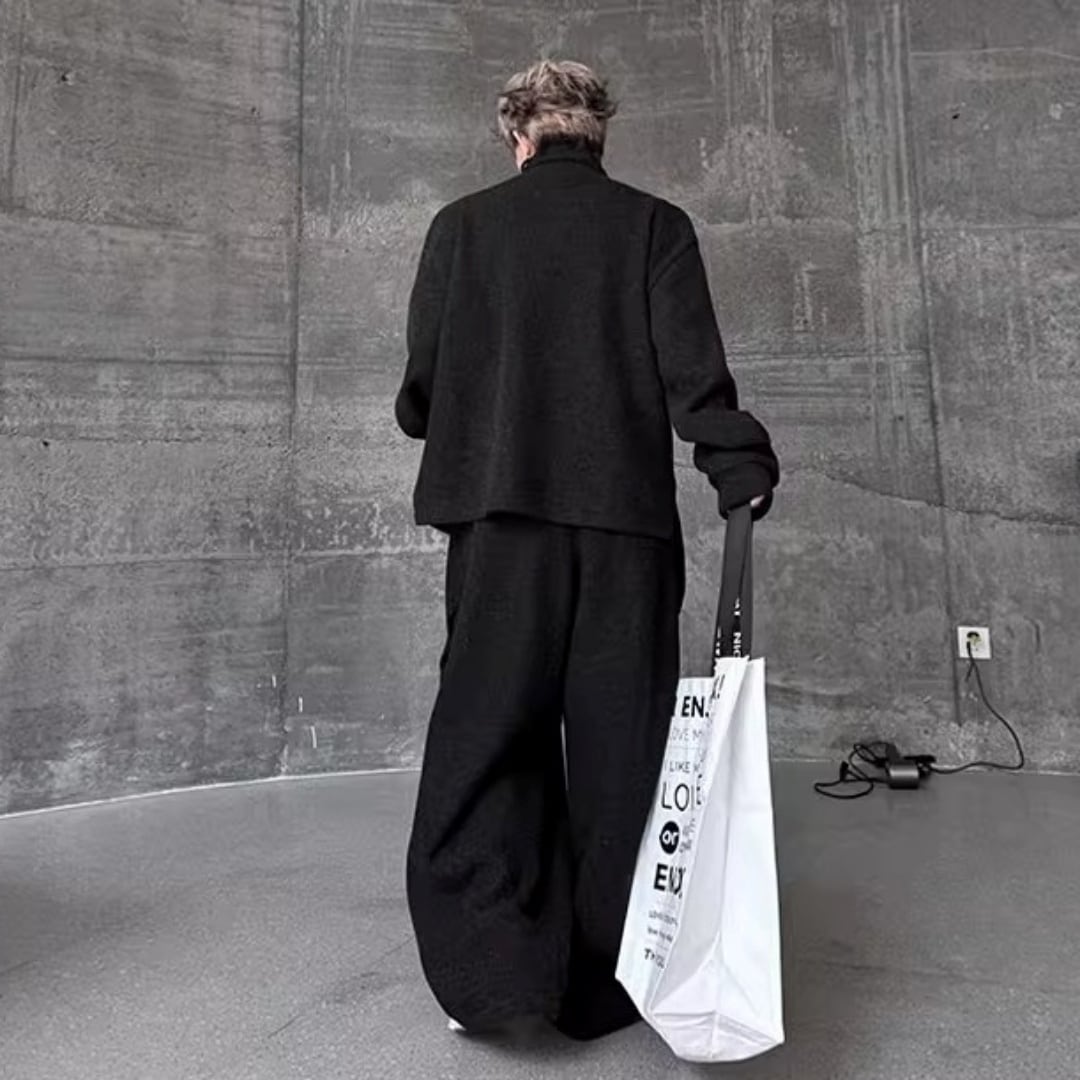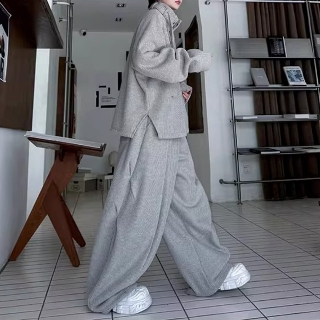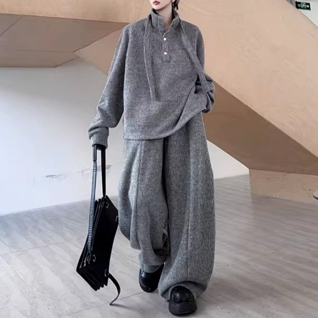 ネックリボン付き ハイネックプルオーバー&ワイドパンツセットアップ 3カラー D12047
