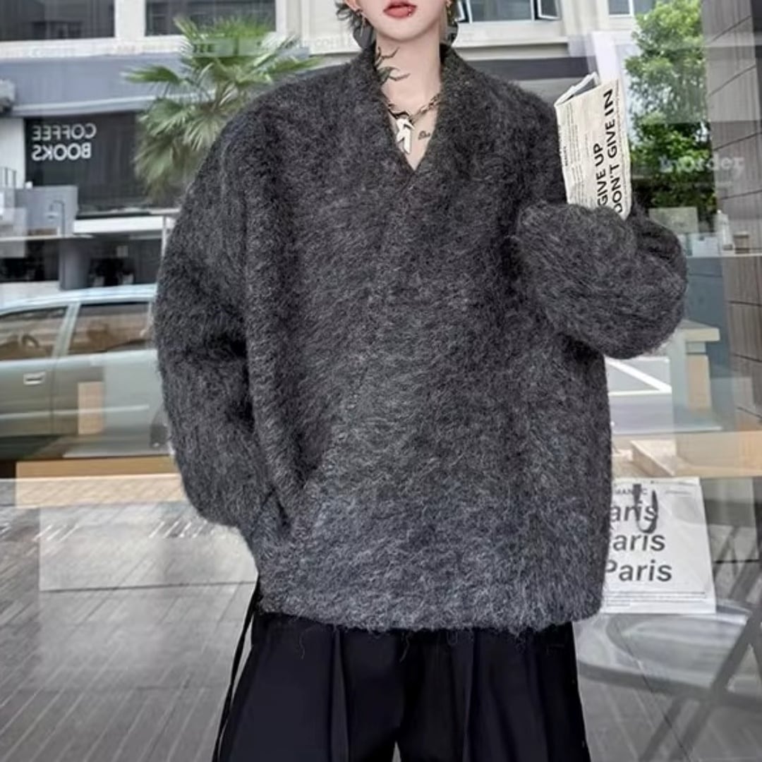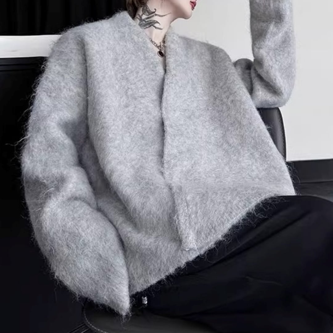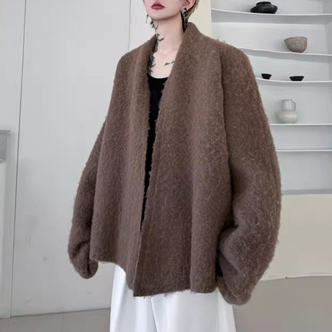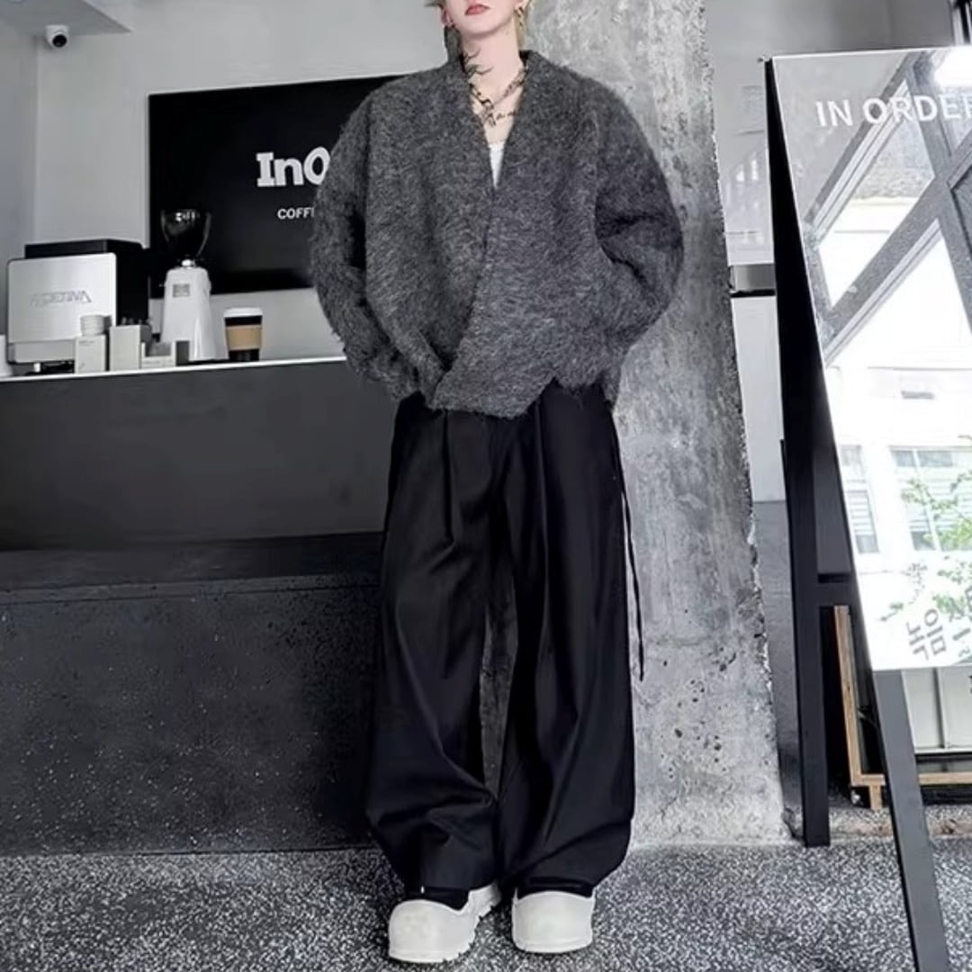 隠しボタン Vネックルーズニットカーディガン 3カラー D12050