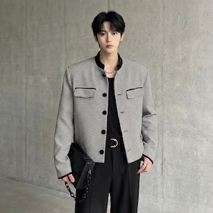 モードクラシック 千鳥格子スタンドカラージャケット D12053