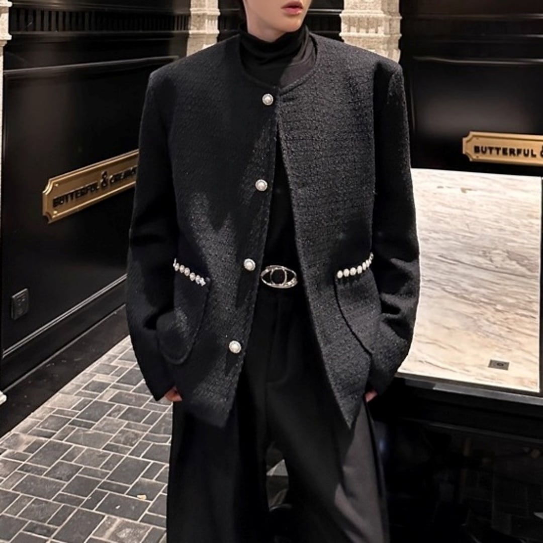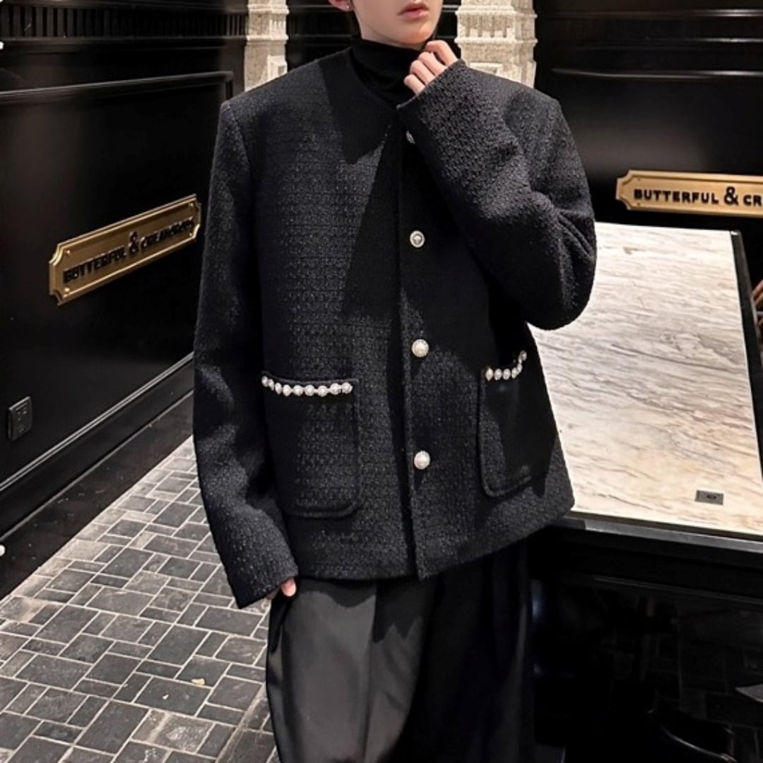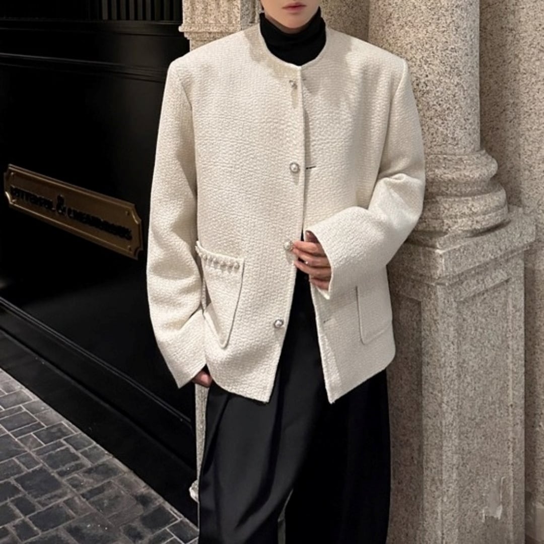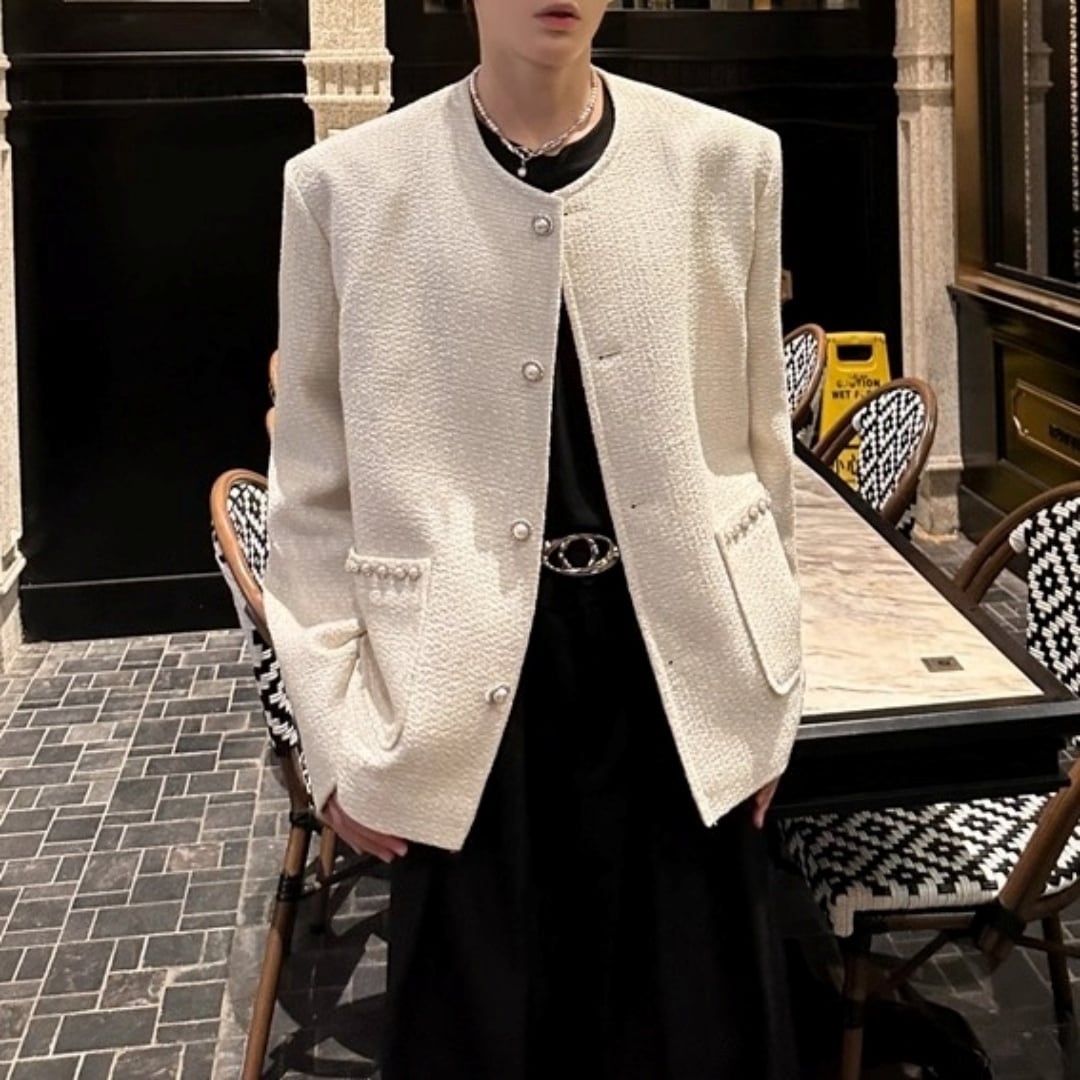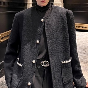 パールトリム ツイード調ノーカラージャケット 2カラー D12062