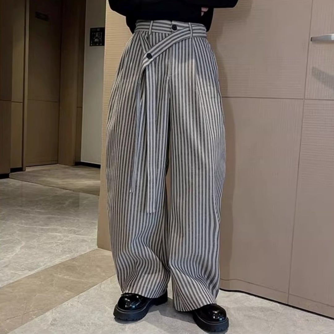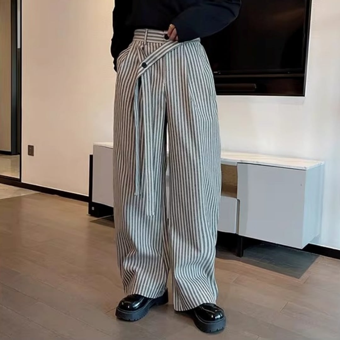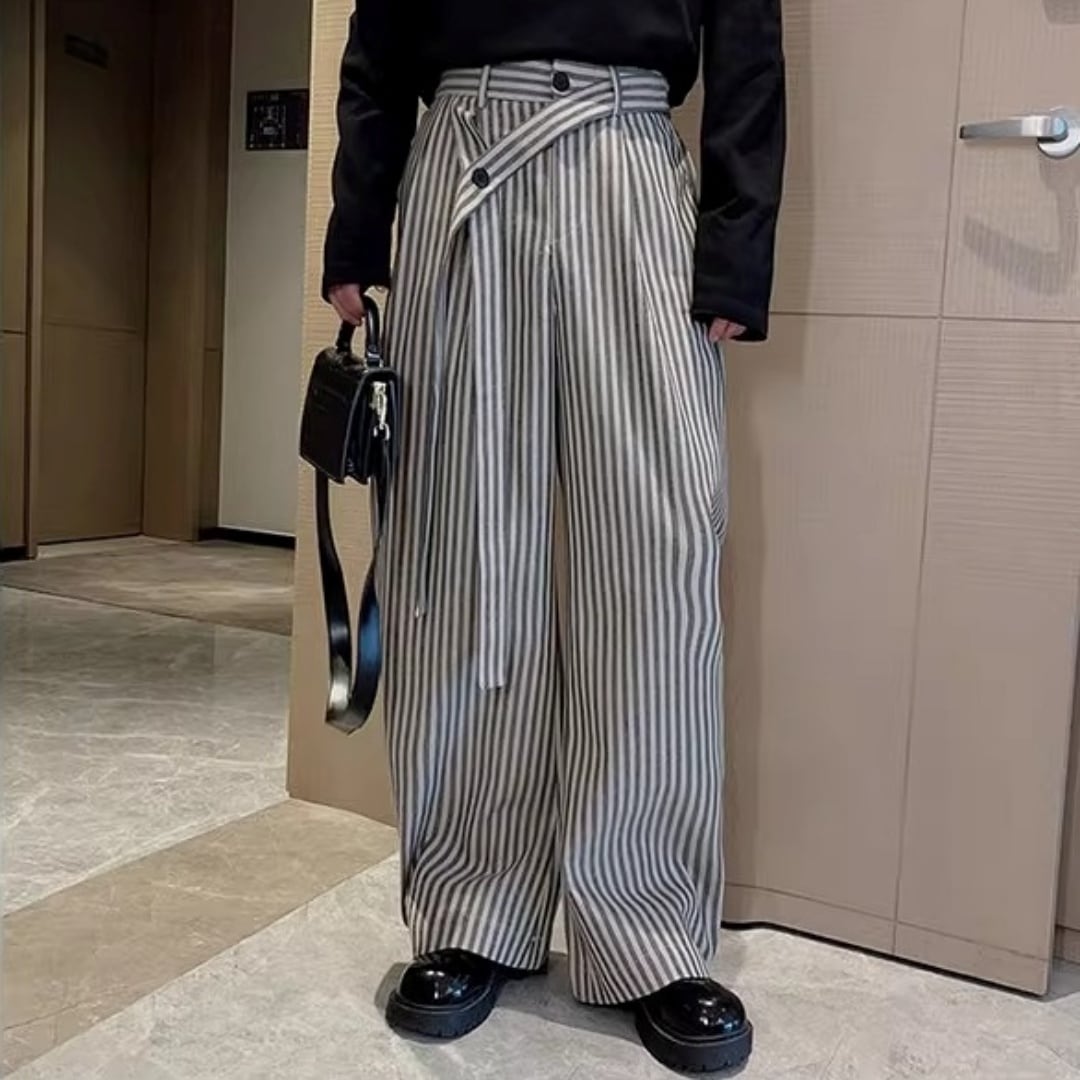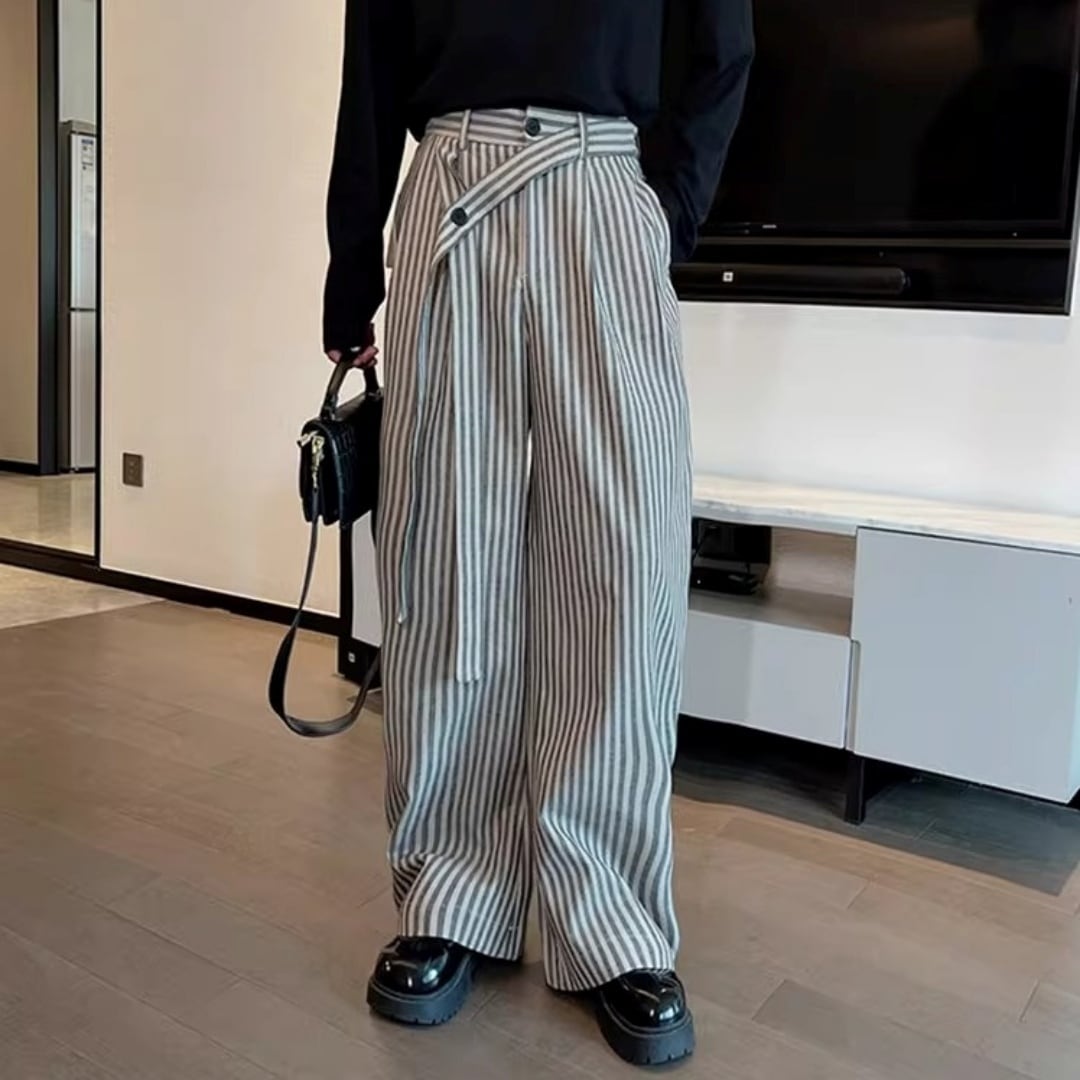 アシンメトリーウエストベルト ストライプワイドパンツ 2カラー D12067