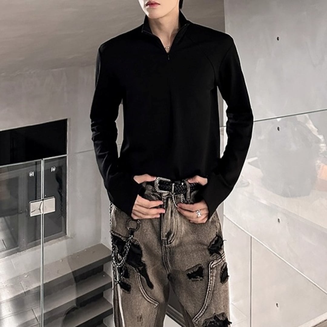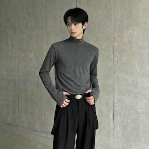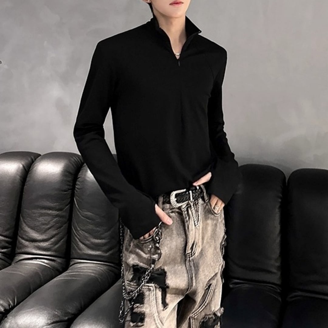 ハーフジップ ハイネック長袖Tシャツ 3カラー D12080