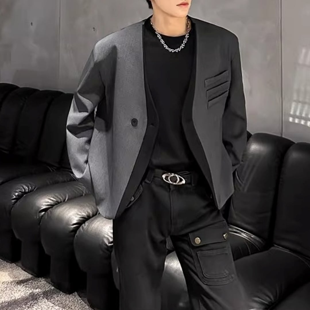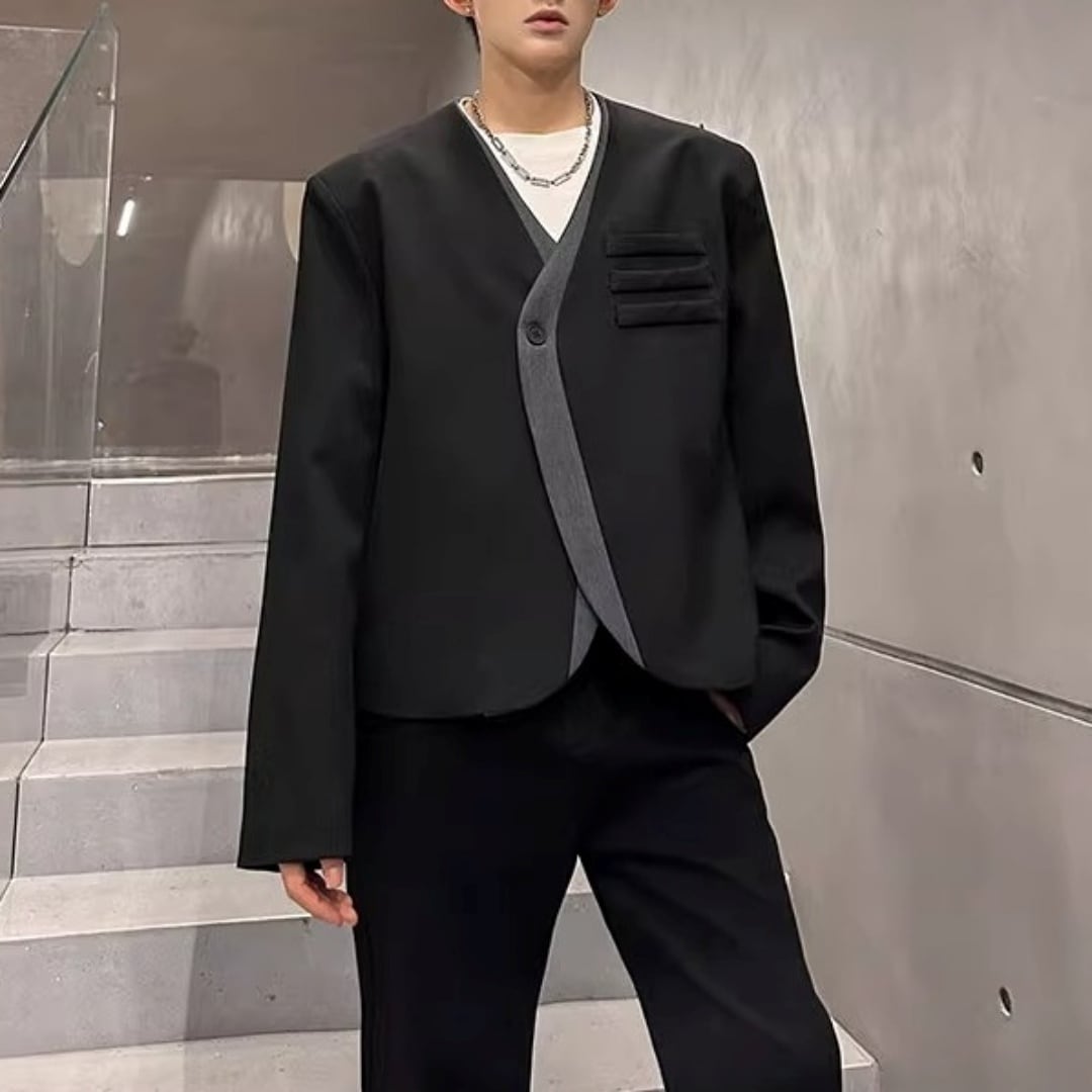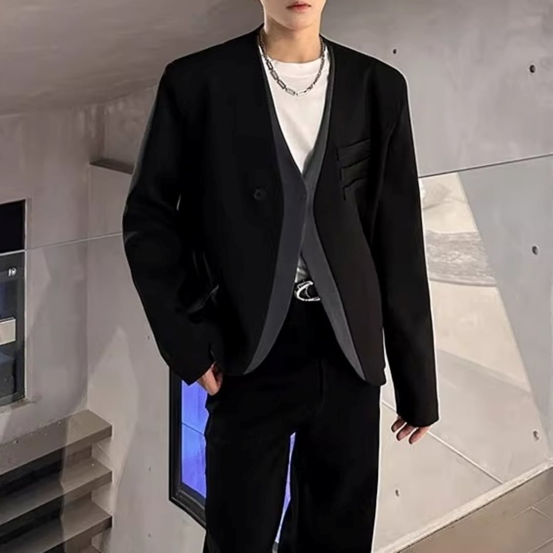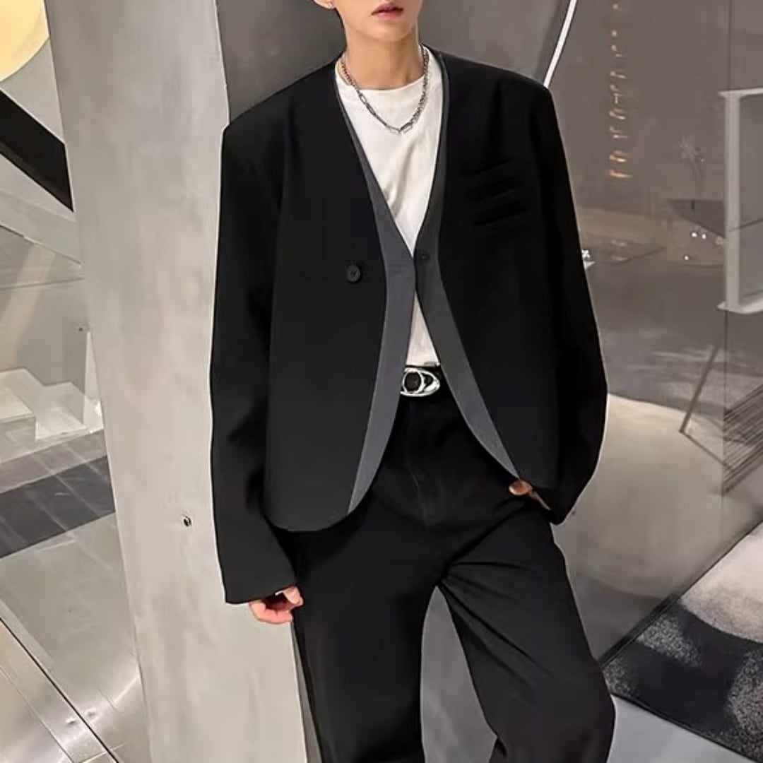 バイカラー ノーカラーショートジャケット 2カラー D12084