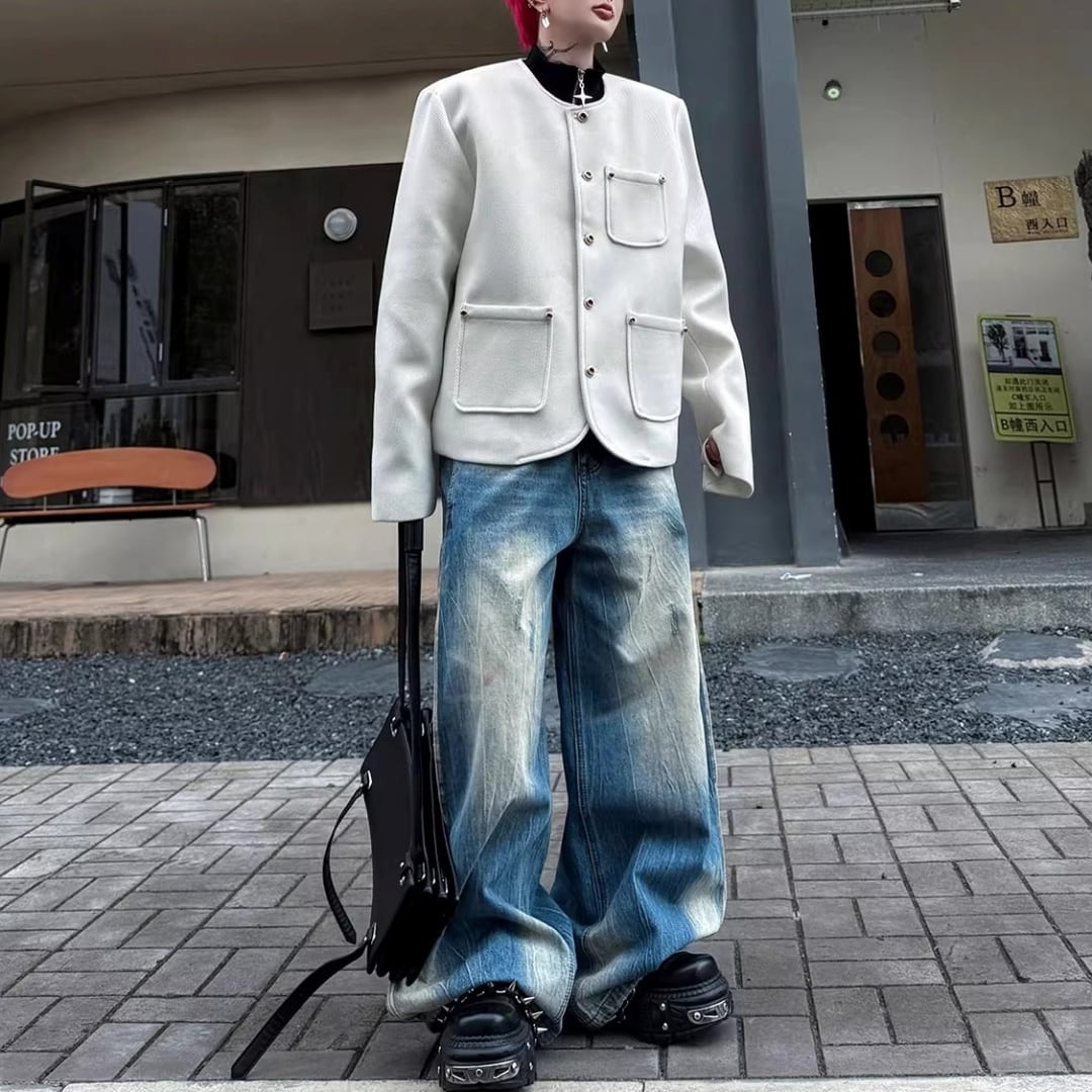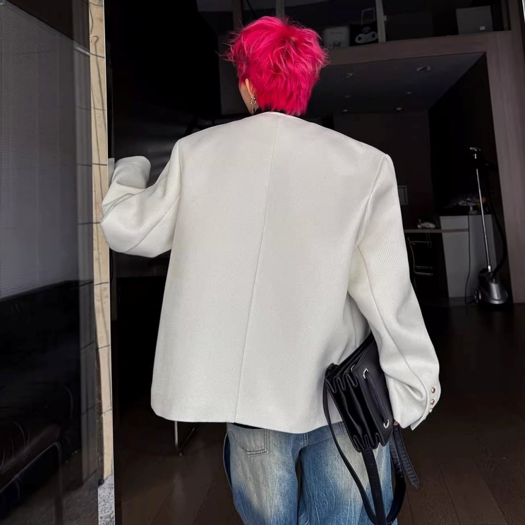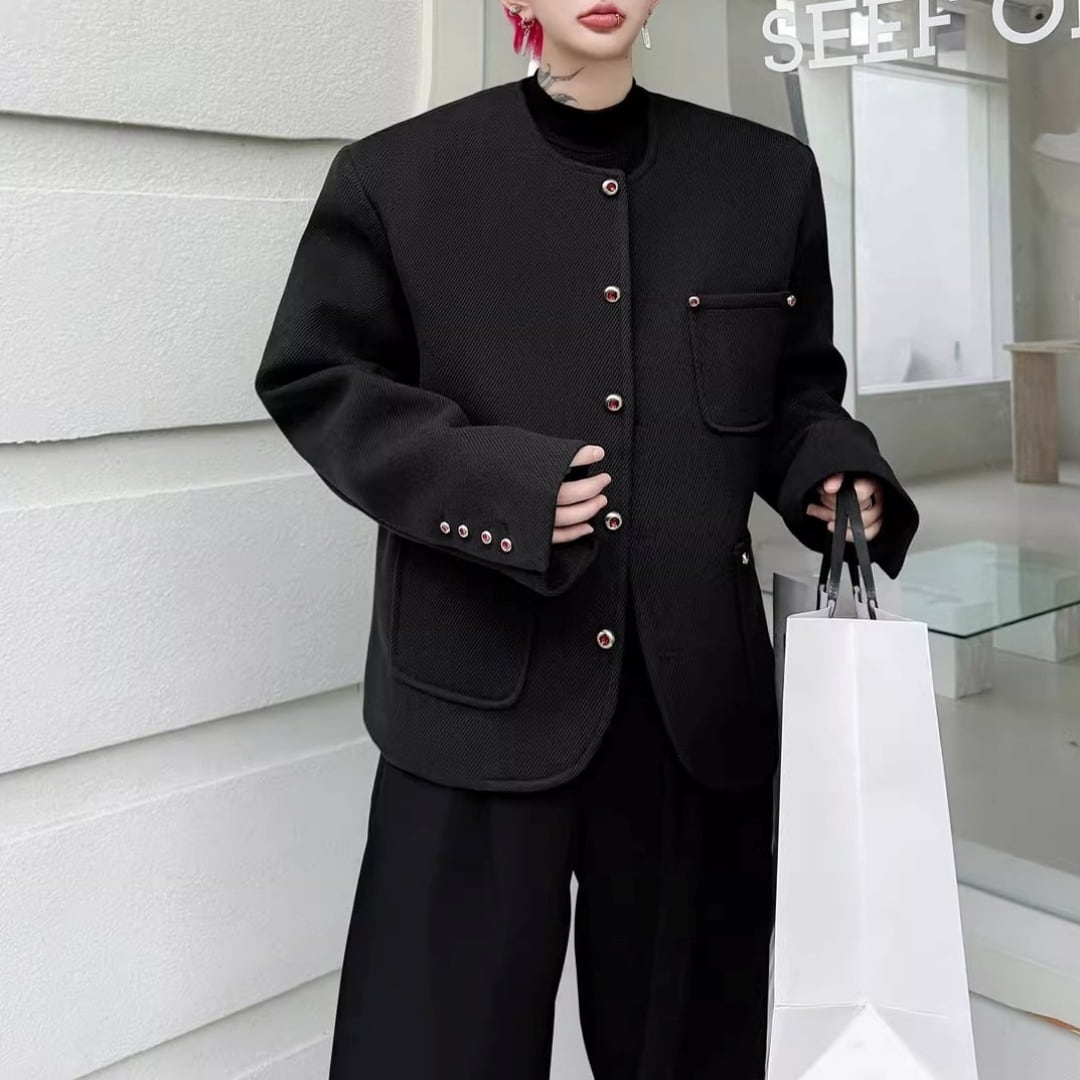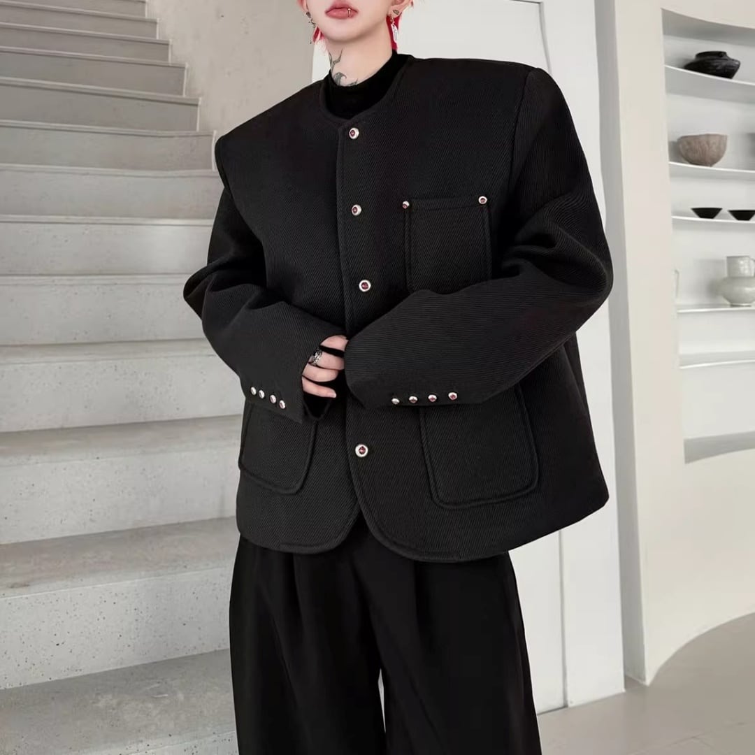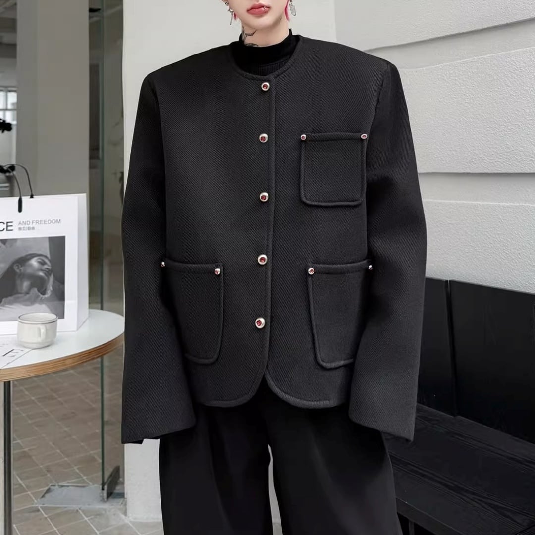 ラインストーンボタン ノーカラーラウンドカットジャケット 2カラー D12090