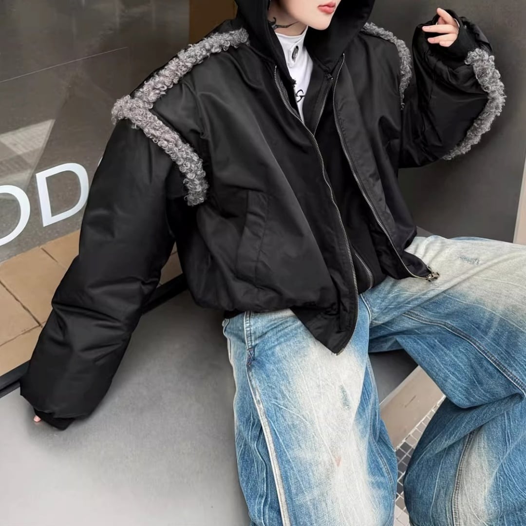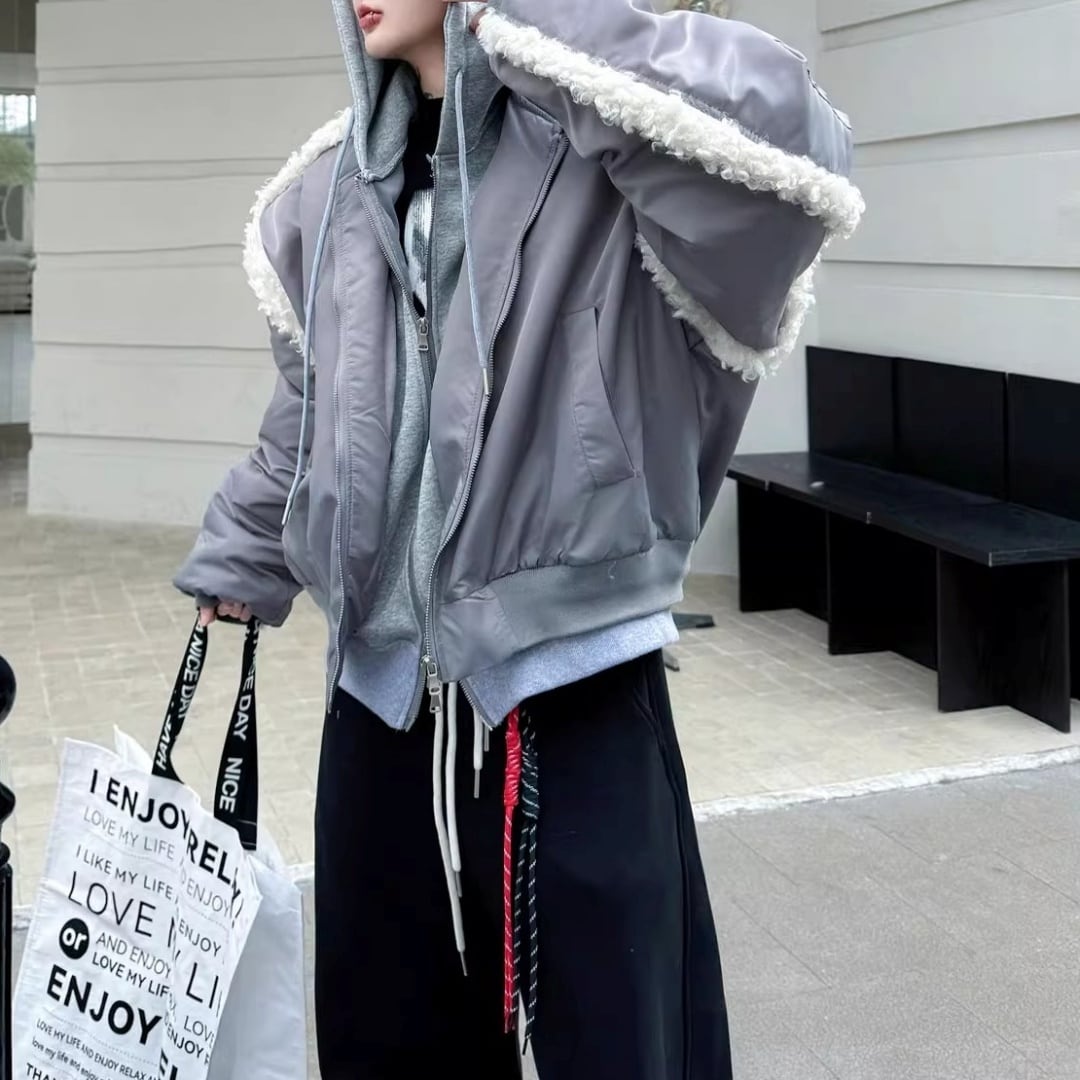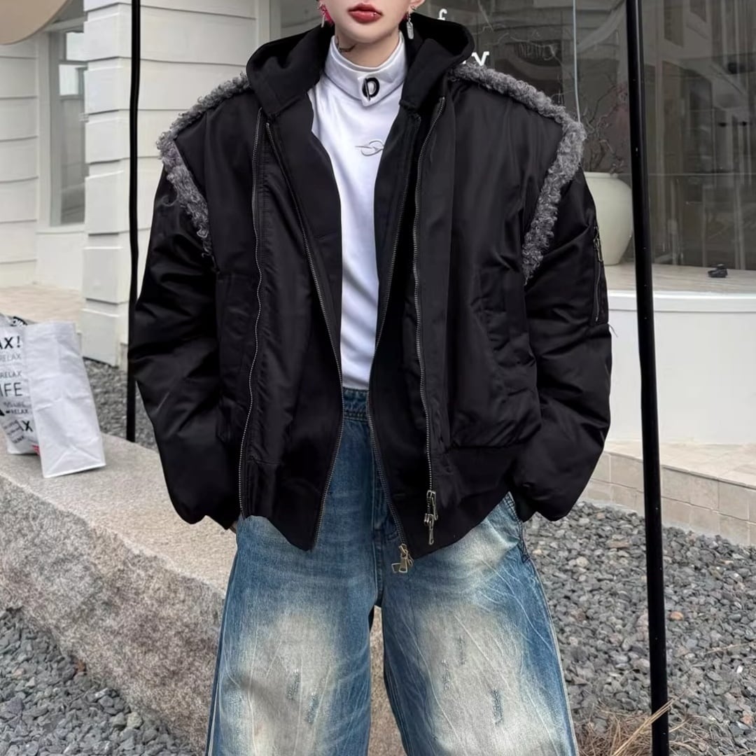 フェイクレイヤード ボアトリミングボンバーブルゾン 2カラー D12091