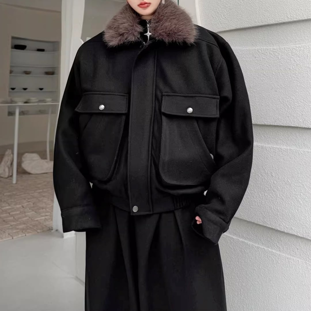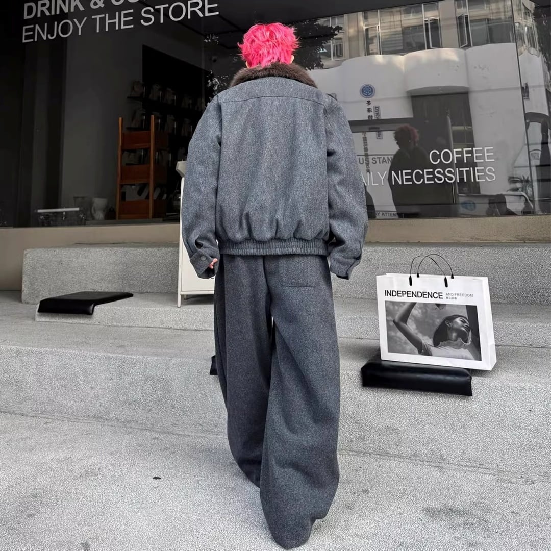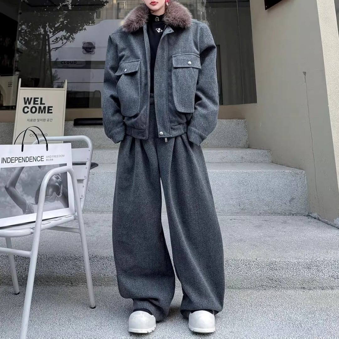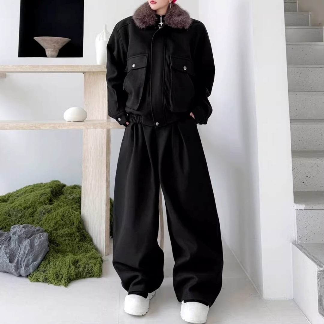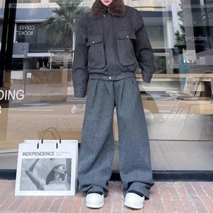 ミリタリーモードファーカラーブルゾン&ワイドパンツセットアップ 2カラー D12093