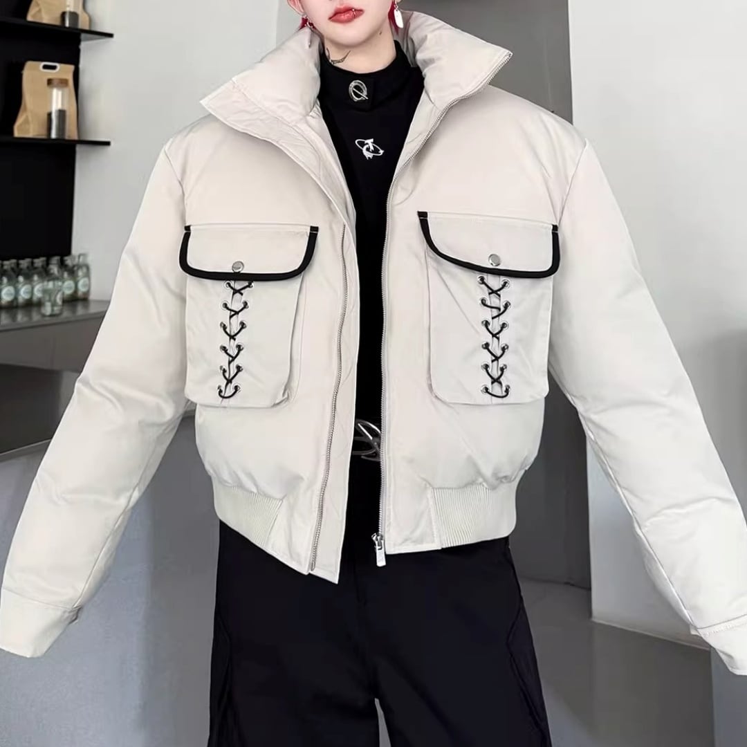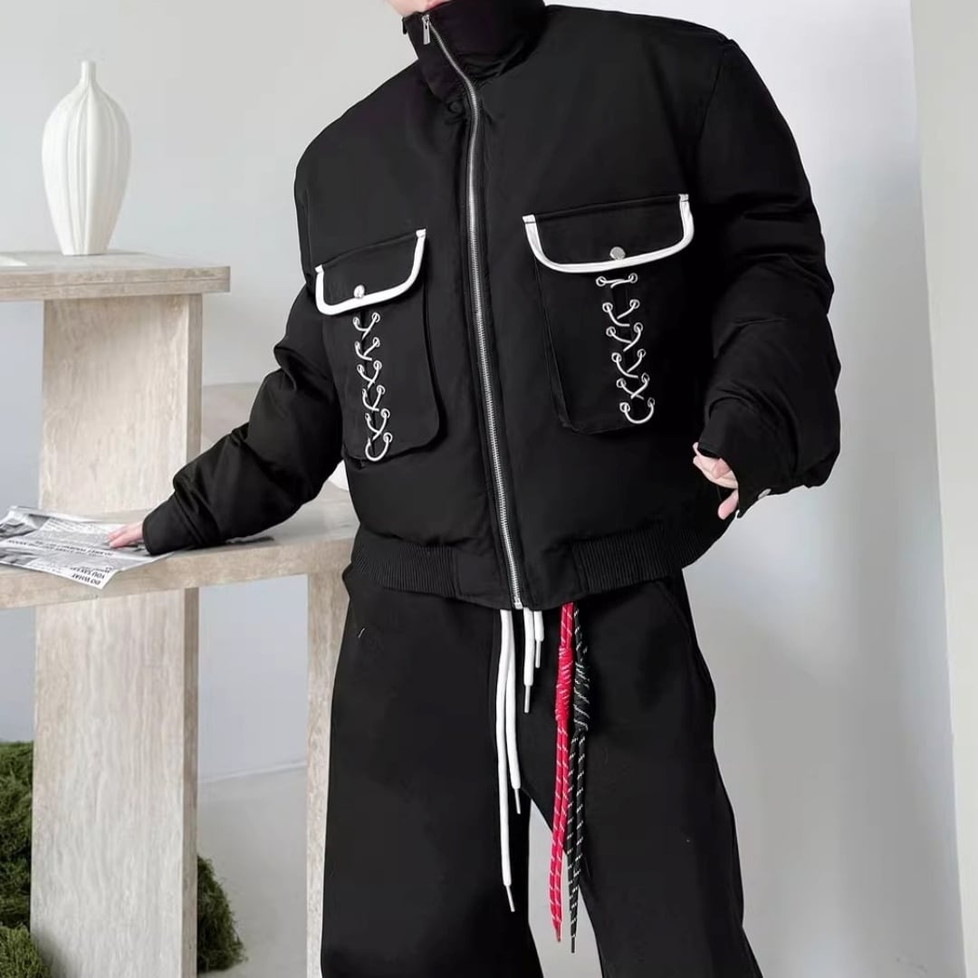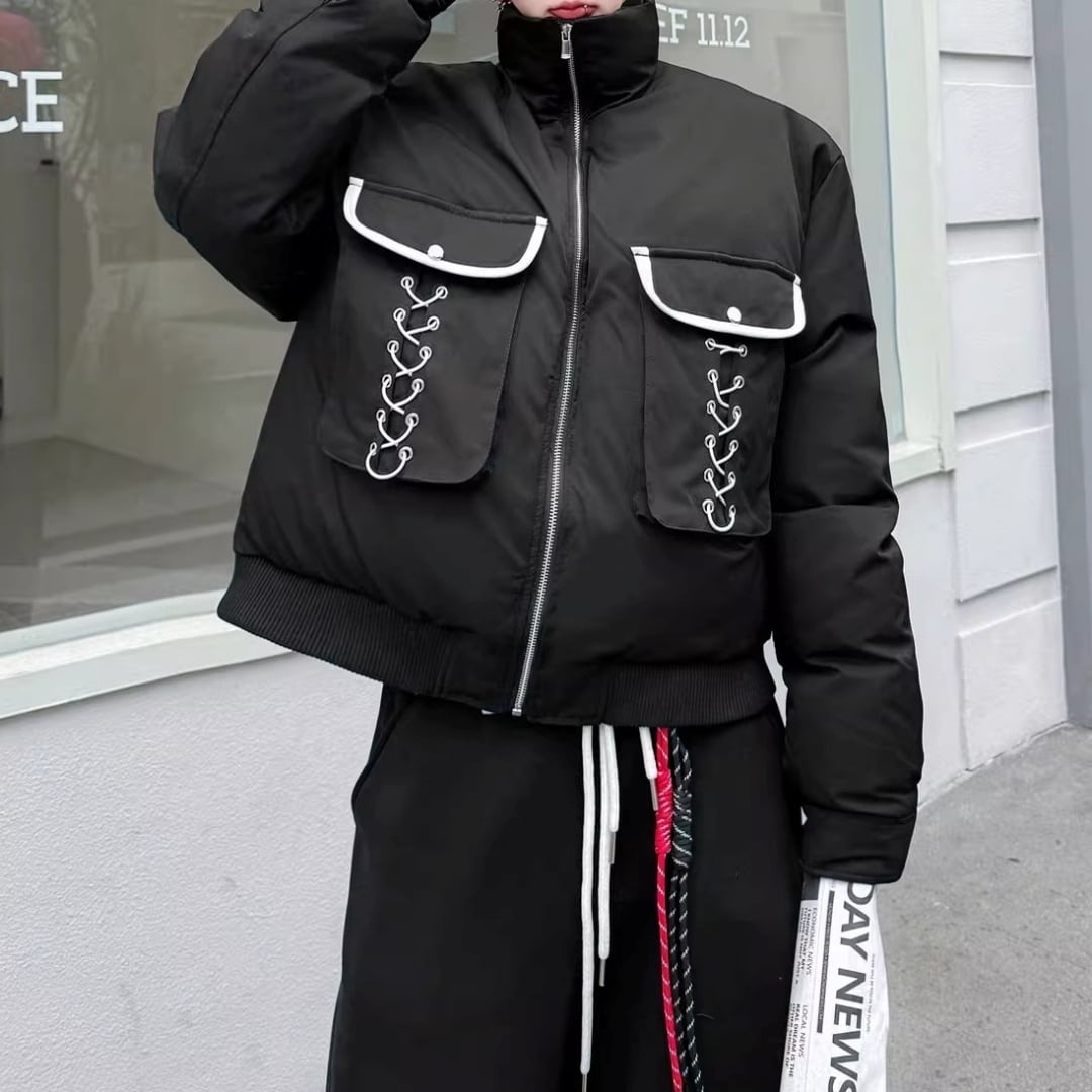 コントラストパイピング クロップドパデッドブルゾン 2カラー D12096