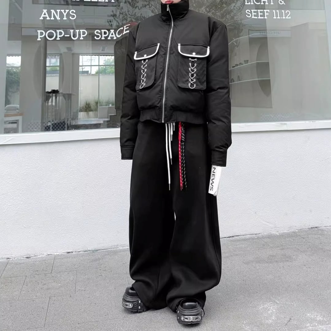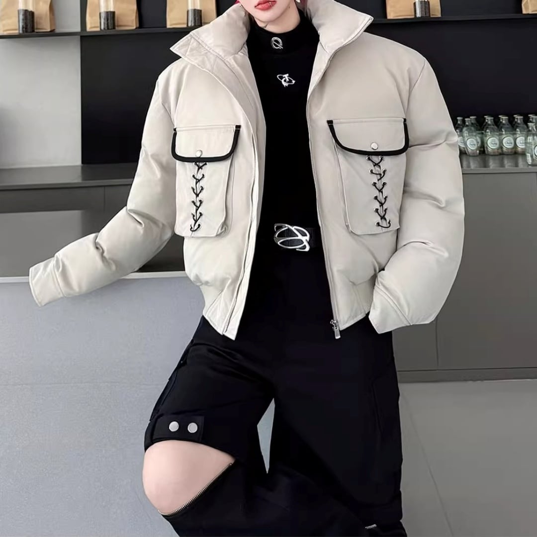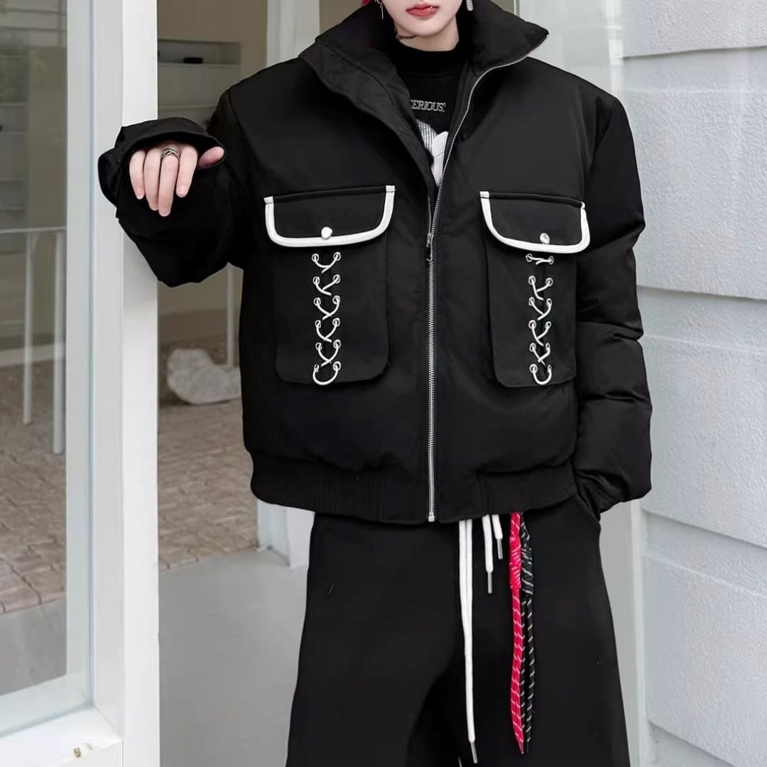 コントラストパイピング クロップドパデッドブルゾン 2カラー D12096